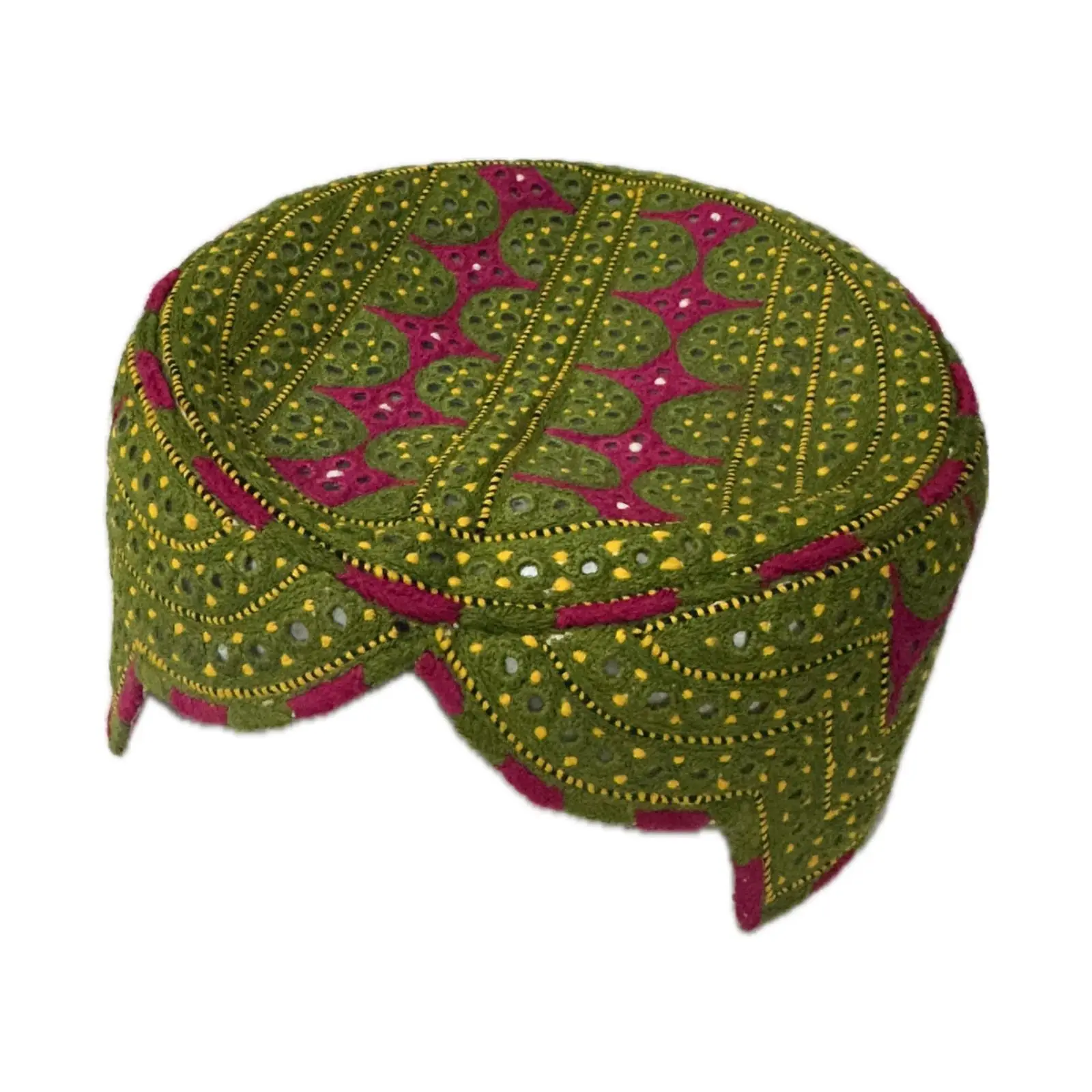 Dekoreret blød stof bedehue, grøn/lilla