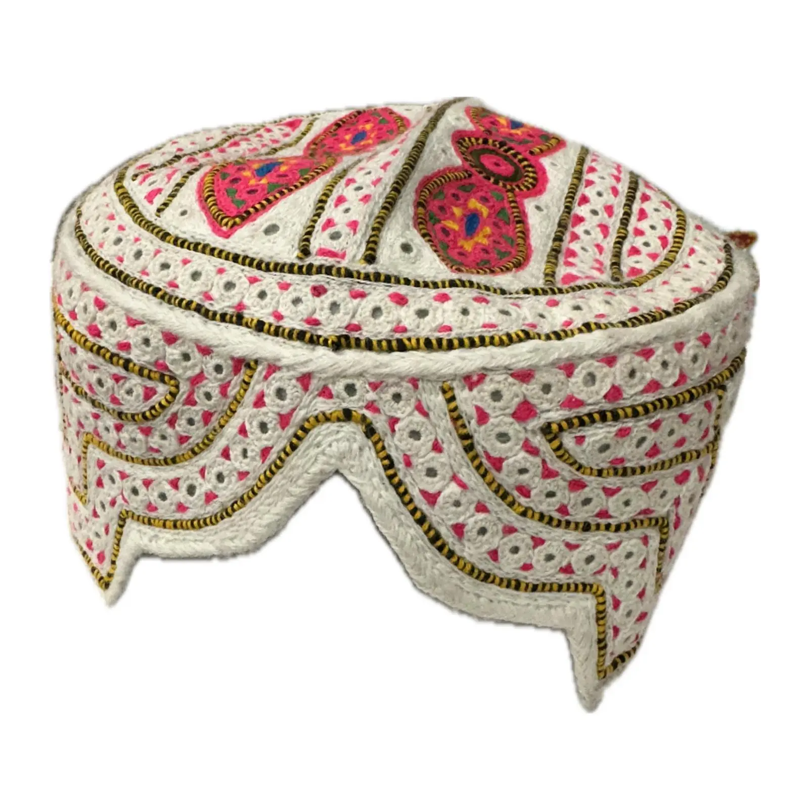 Dekoreret blød stof bedehue, hvid/lyserød