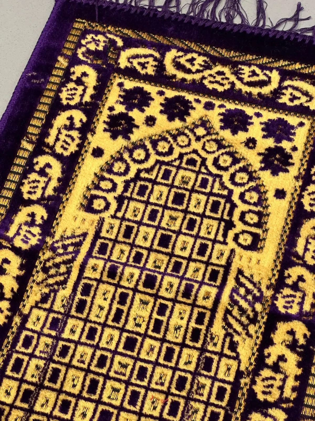 Lille Børnebedetæppe i gylden/lilla