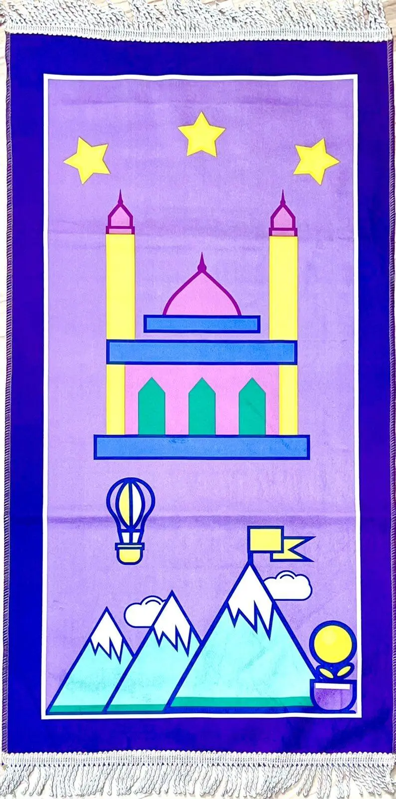 Stor Børnebedetæppe Moske med stjerner (Lilla)