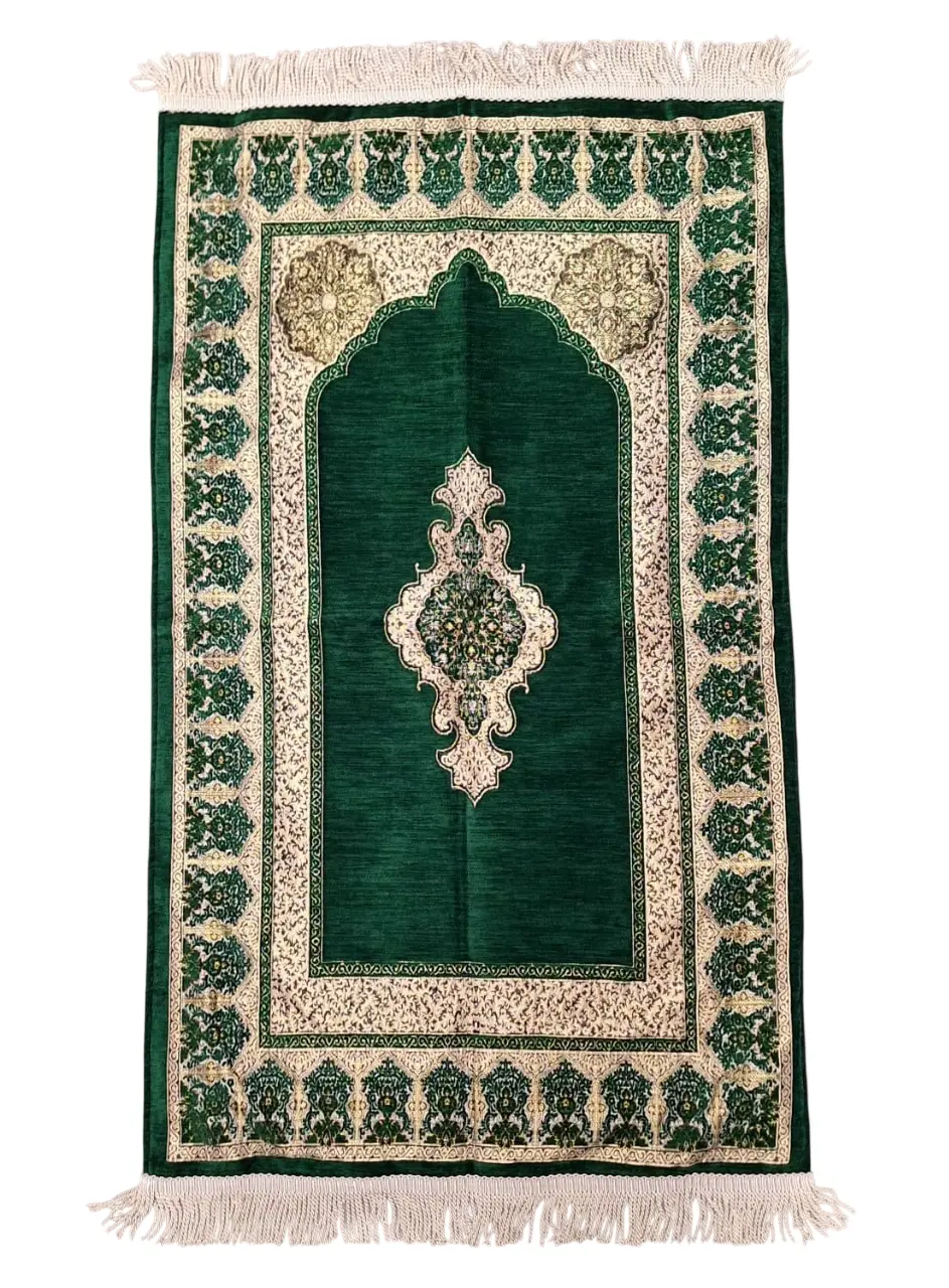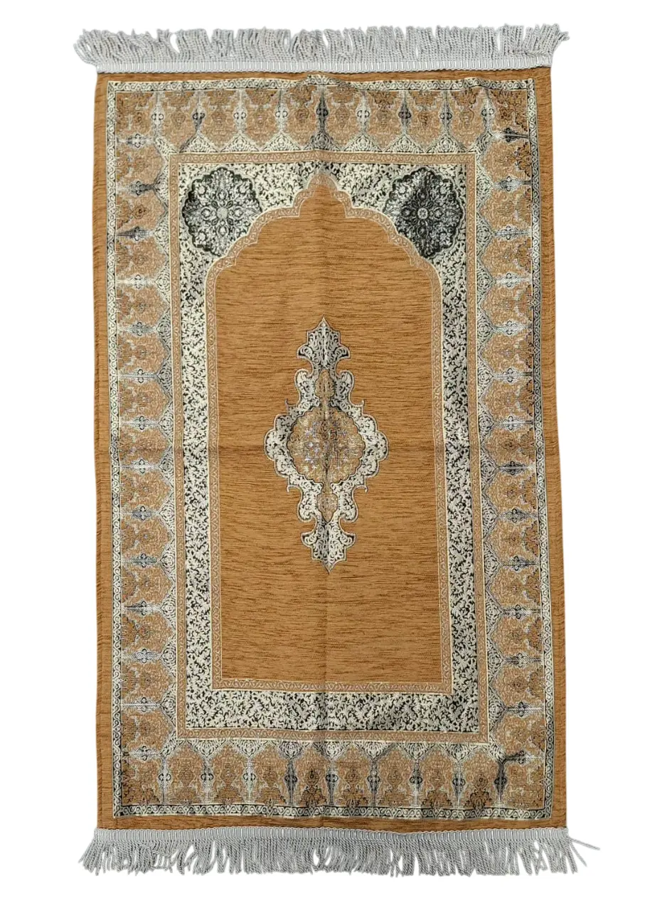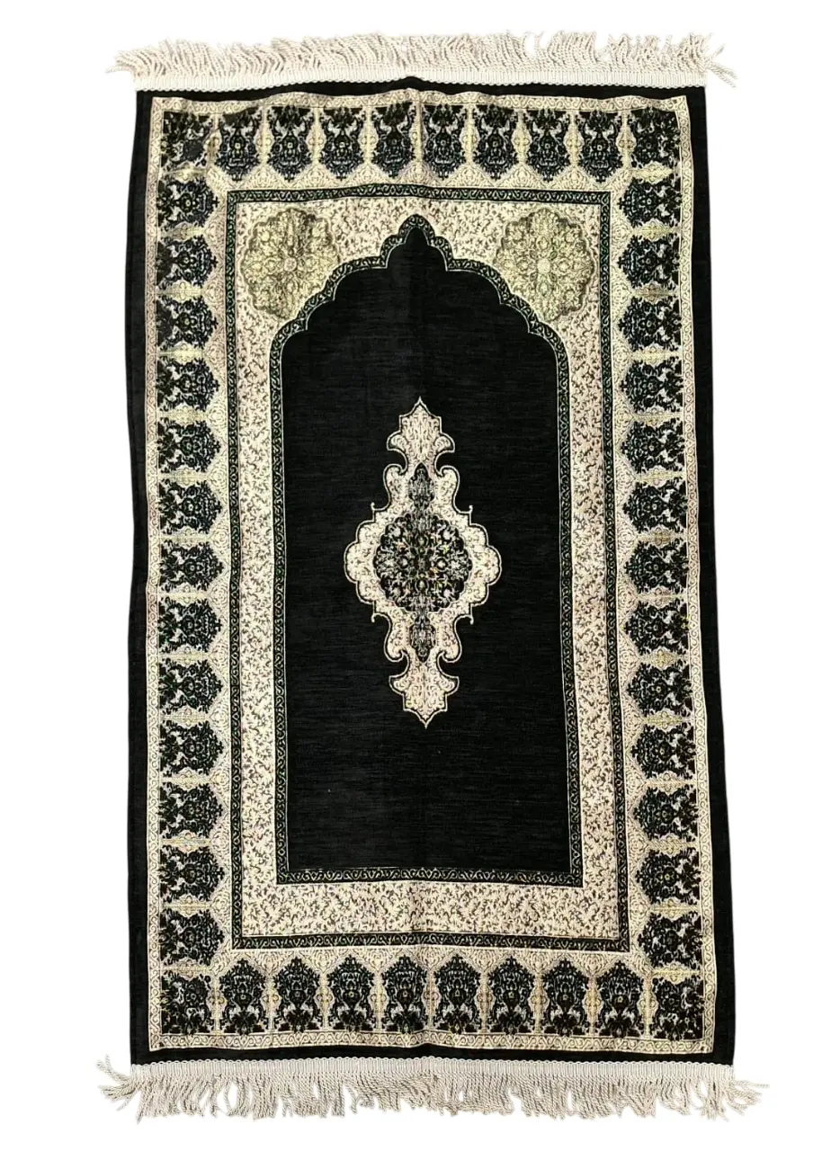 Træd ind i din bøn med ro i hjertet og elegance under dine hænder. Dette eksklusive tyrkiske bedetæppe er fremstillet i ultra-blød fløjl af højeste kvalitet og skabt til dig, der ønsker det bedste i din ibadah.