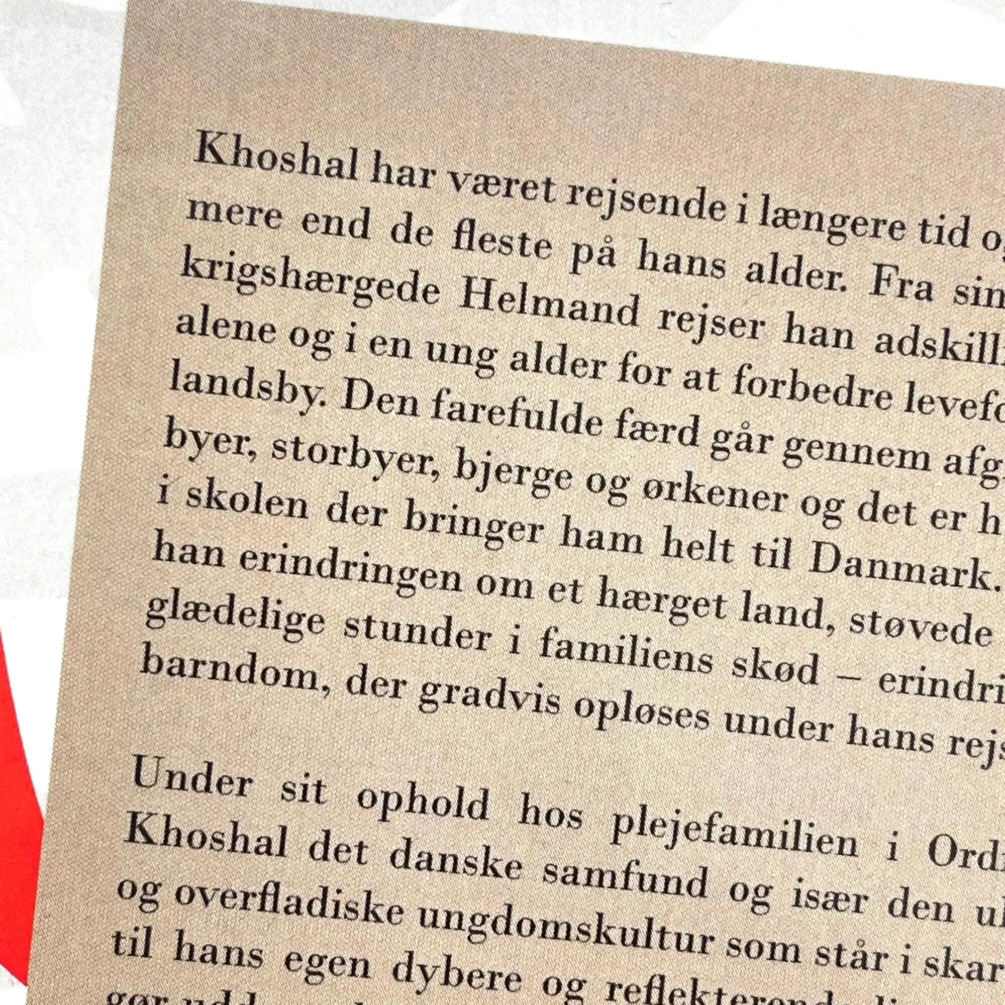 Den farefulde færd går gennem afghanske landsbyer, storbyer, bjerge og ørkener og det er hans flittighed i skolen der bringer ham helt til Danmark. Med sig har han erindringen om et hærget land, støvede markeder og glædelige stunder i familiens skød – erindringen om en barndom, der gradvis opløses under hans rejse. Under sit ophold hos plejefamilien i Ordrup møder Khoshal det danske samfund og især den ubekymrede og overfladiske ungdomskultur som står i skarp kontrast til hans egen dybere og reflekterende livssyn.