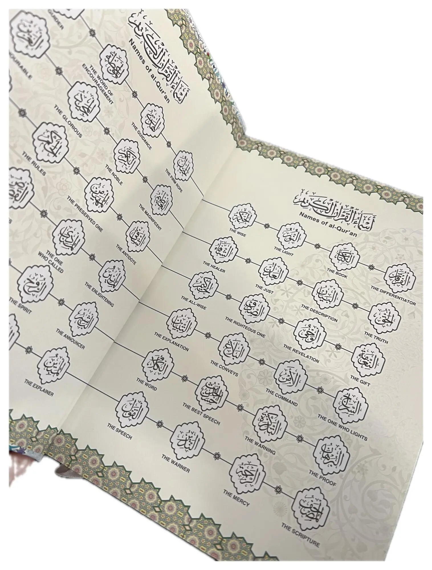 • Calligraphic Excellence: Each page is beautifully designed with traditional Islamic calligraphy and intricate illumination, reflecting the rich artistic heritage of the Muslim world.