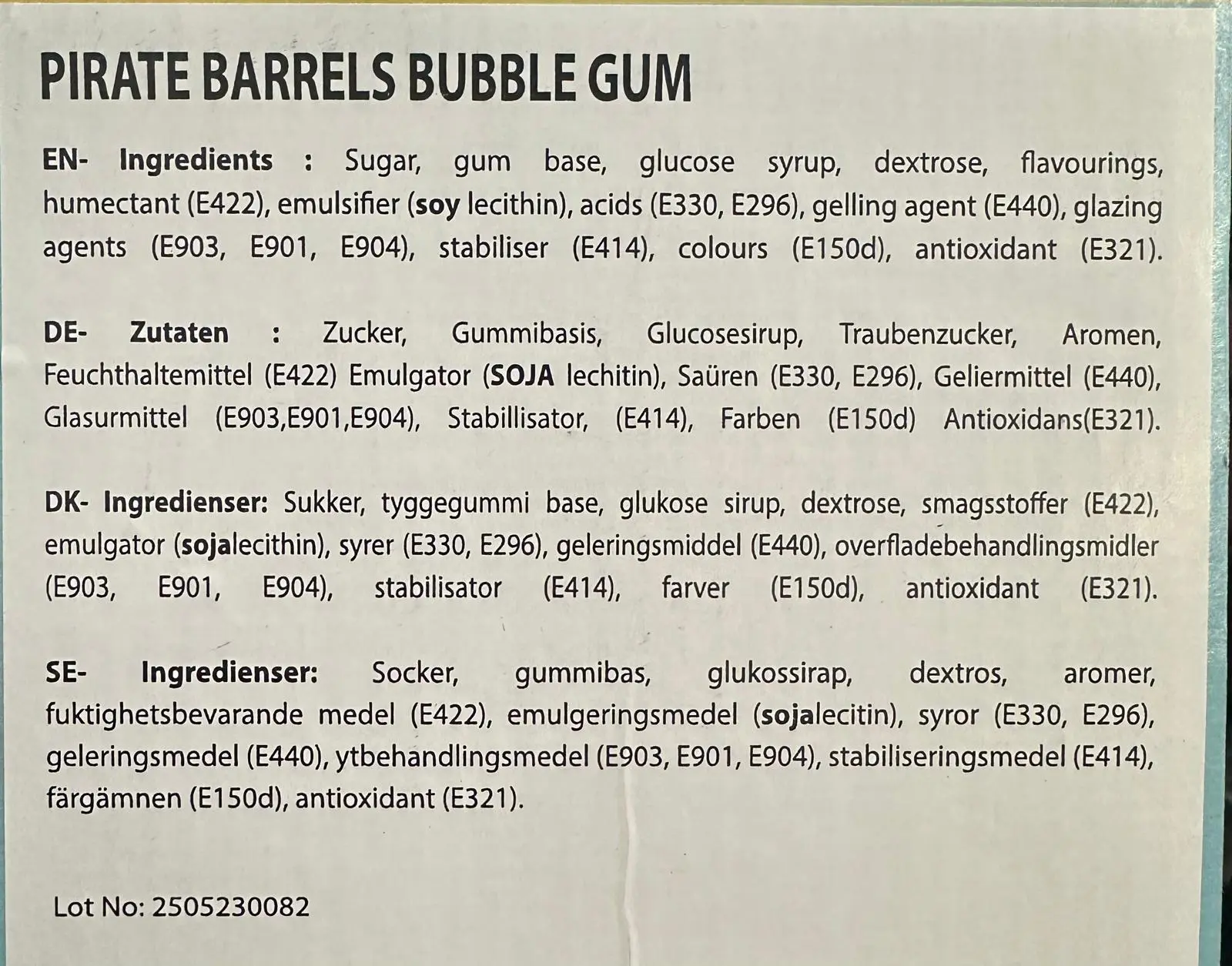 Pirate Barrels Cola Bubble Gum, 200 stk