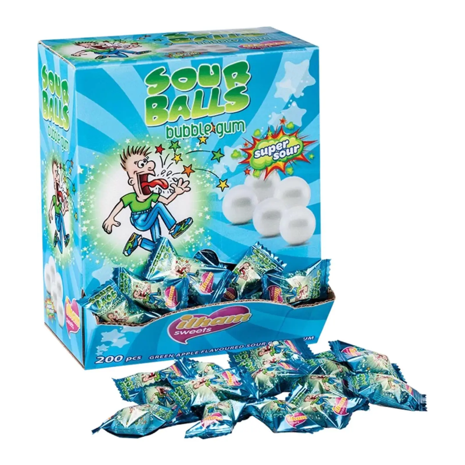 Sour Ball Green Apple Super Sour Bubble Gum, 200 stk