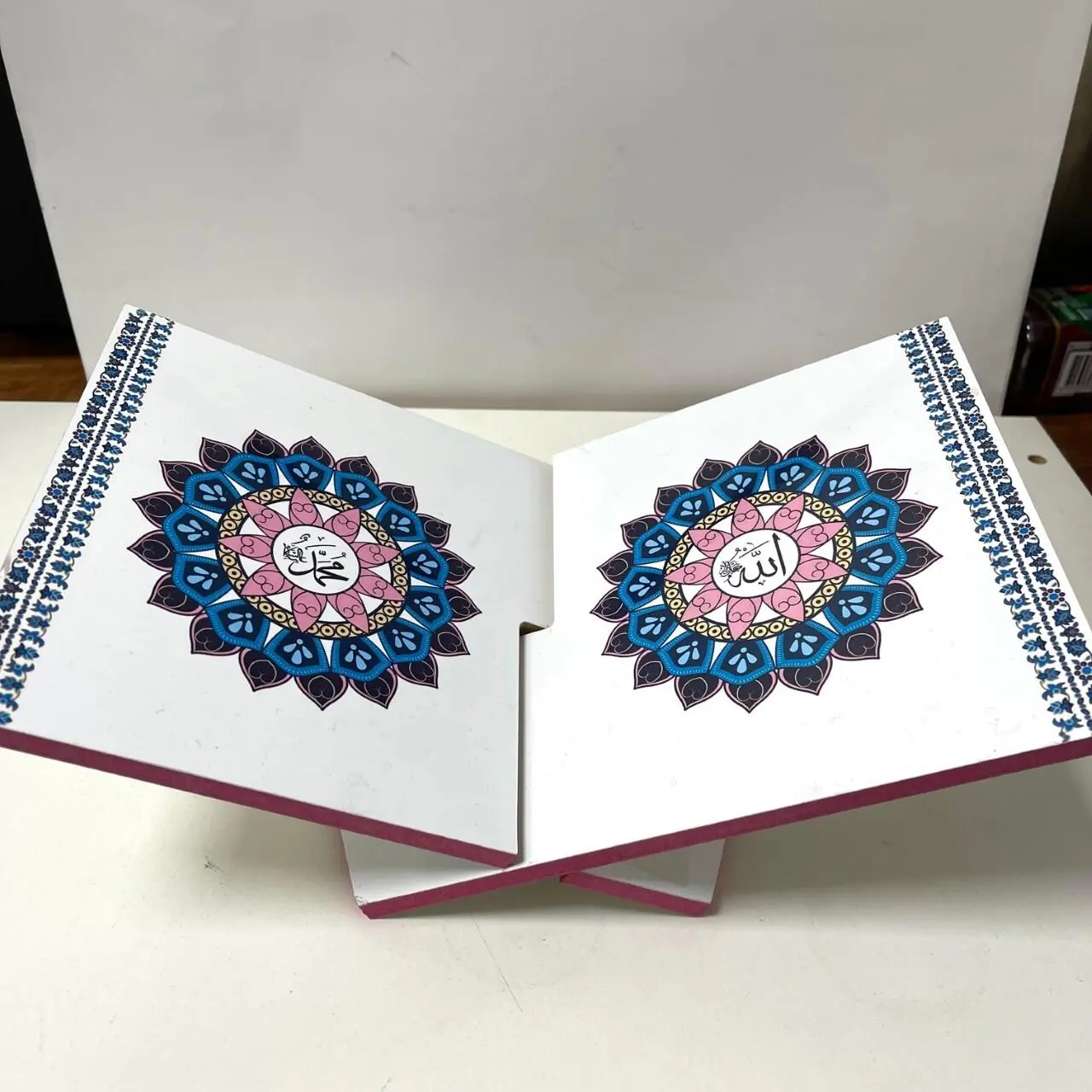 Træ Koran holder i hvid og lyserød farve.