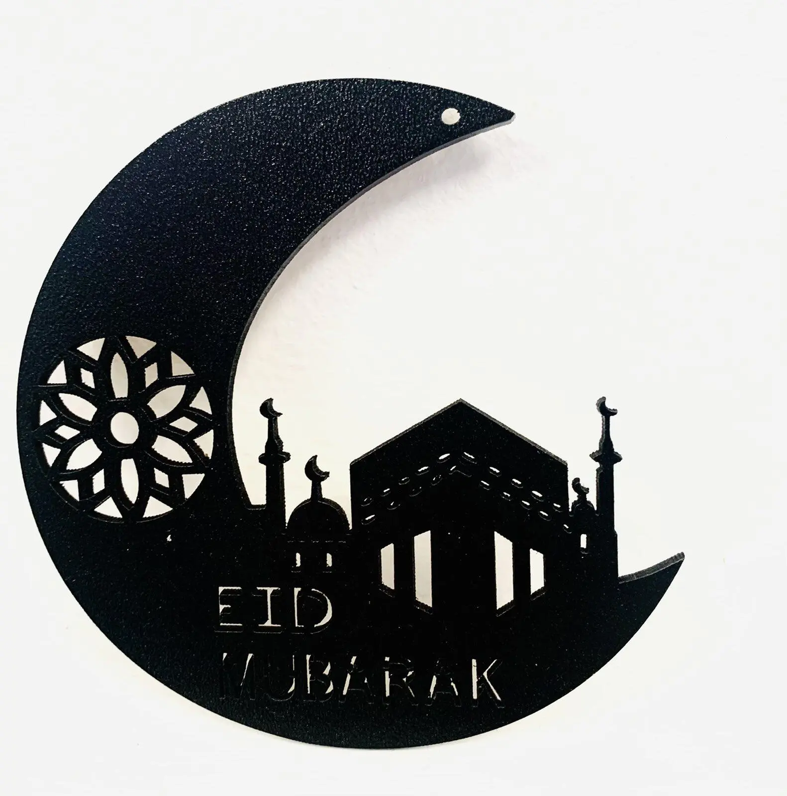 • Eid Mubarak Kaba Holzdekoration in Schwarz, Mond (10cm)