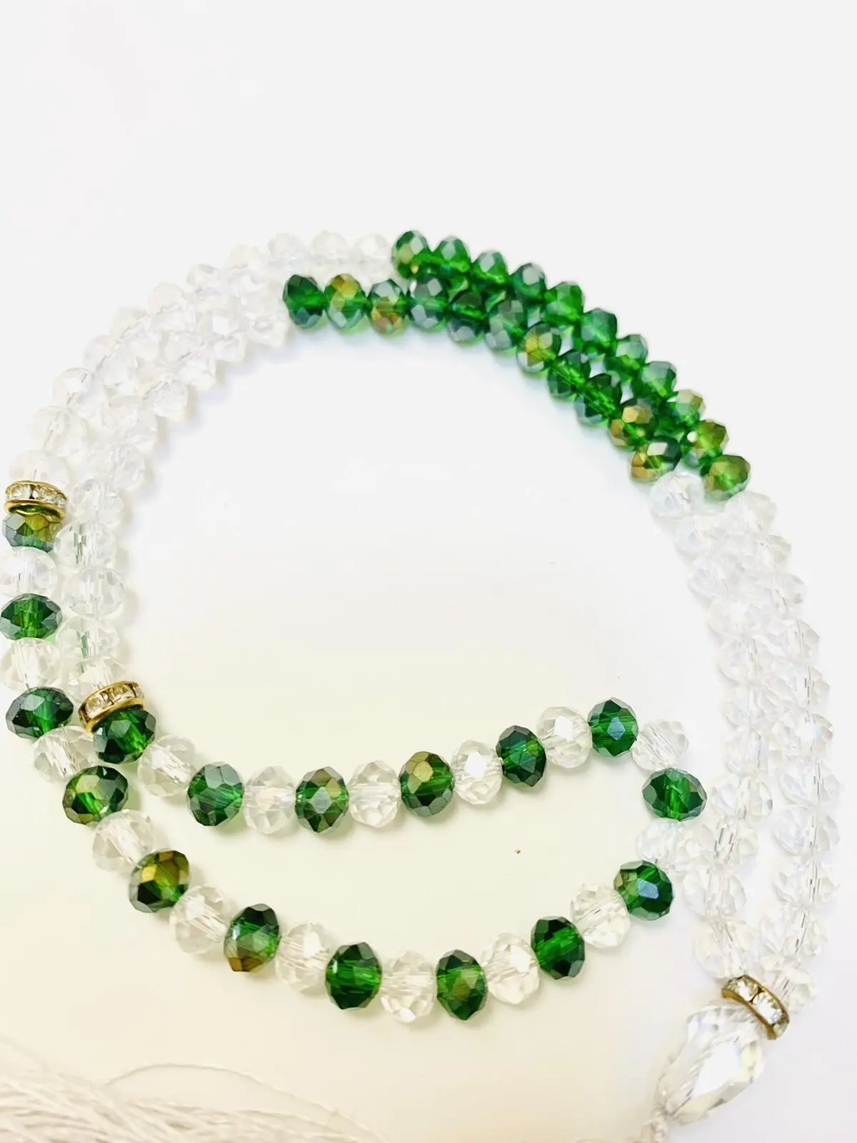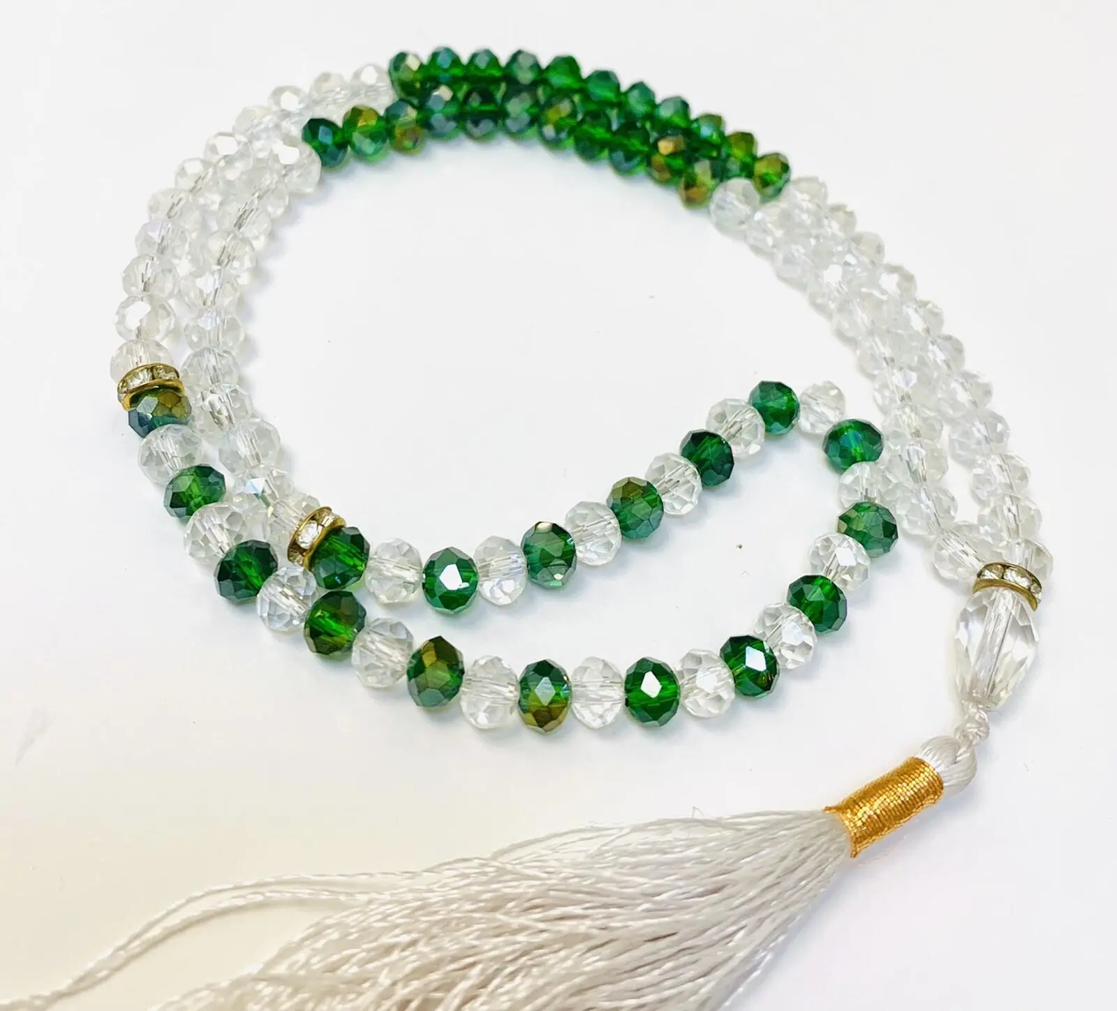 Krystal Tasbeeh Weiß/Grün (99 Perlen)