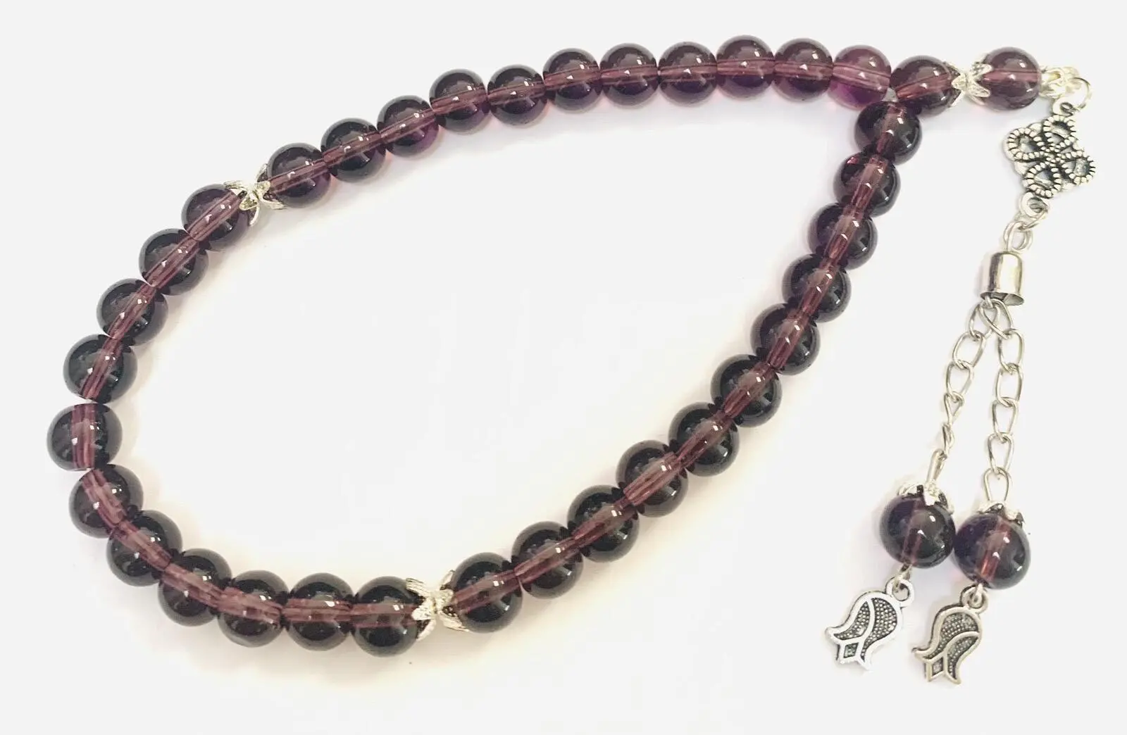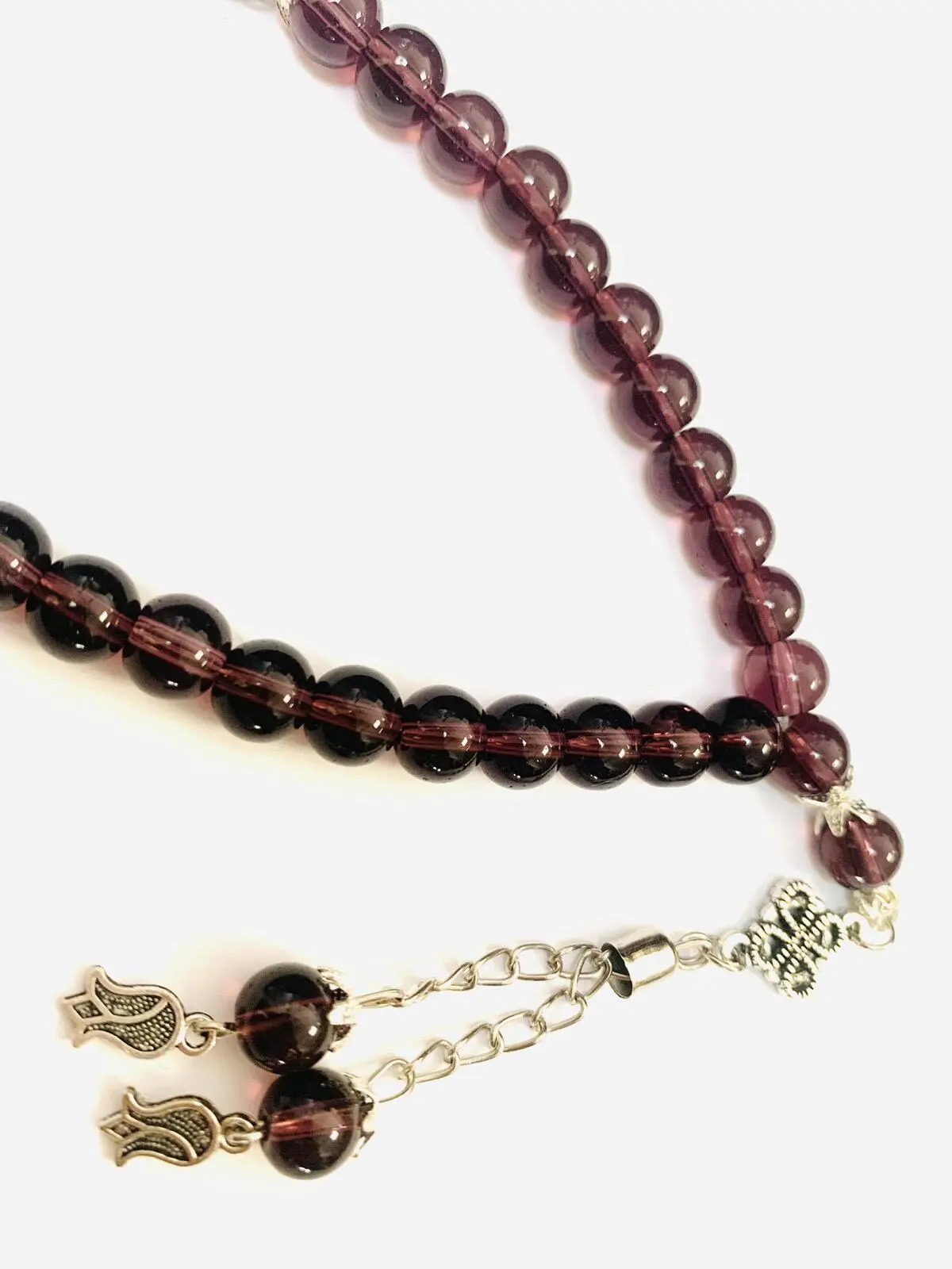 Granatapfelfarbenes Glas-Tasbih mit 33 Perlen