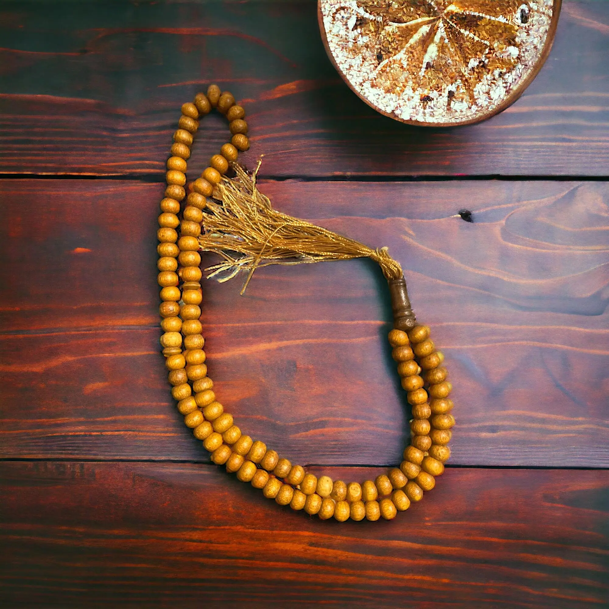 • Leichter Tasbih mit 99 Perlen aus hellem Holz