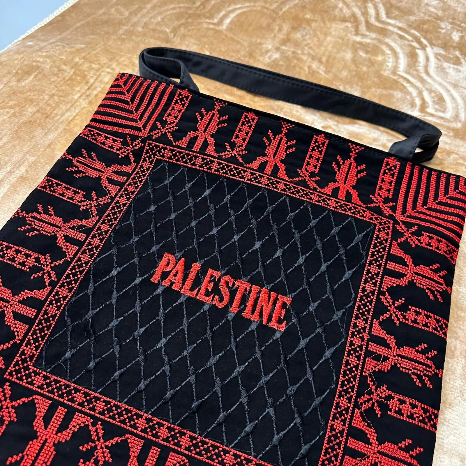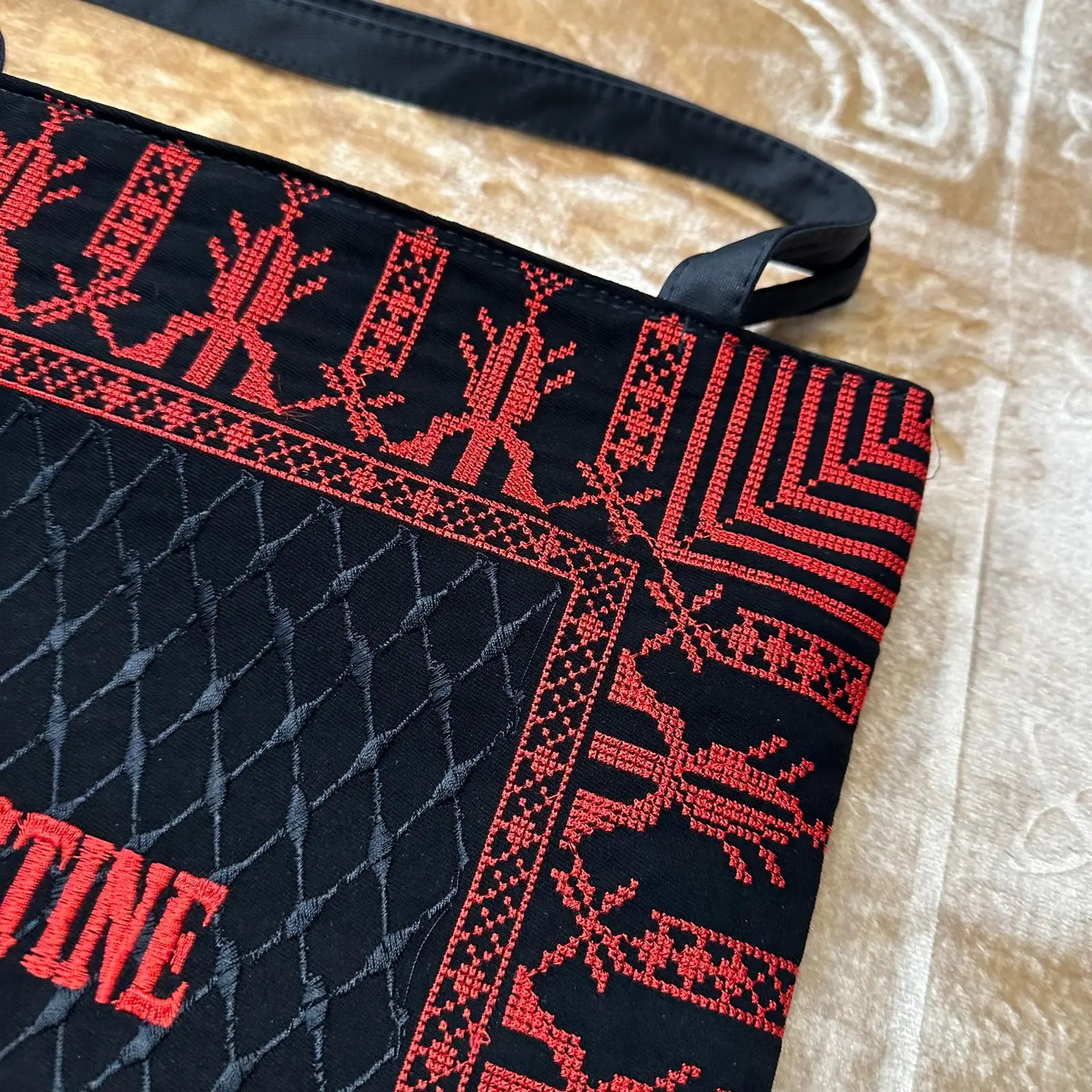 • Handgefertigte Palästina Muletasche mit Reißverschluss - Rot