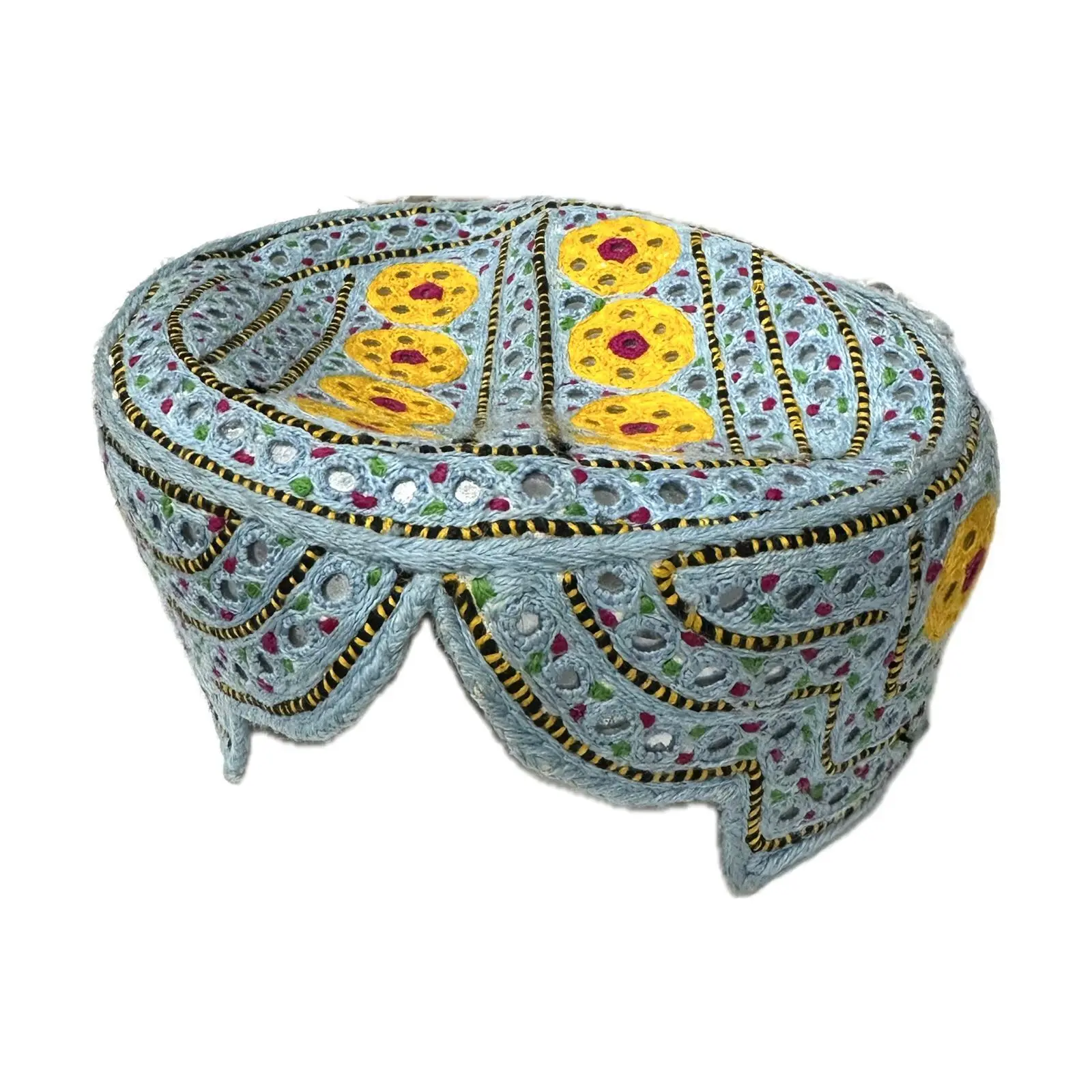 Dekorierte weiche Stoff-Gebetsmütze, hellblau/gelb