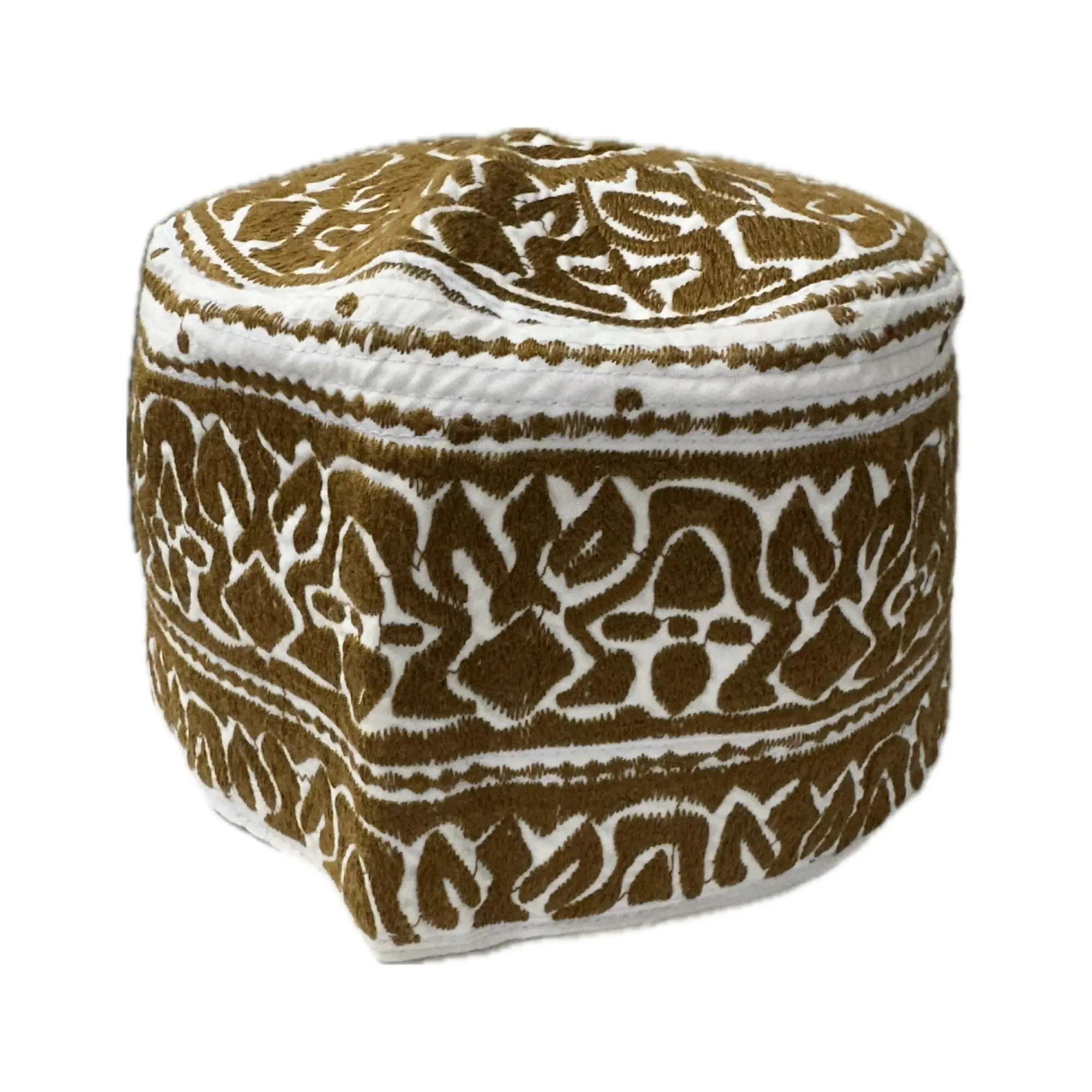 Hohe handgenähte Bedehaube in Braun-Weiß