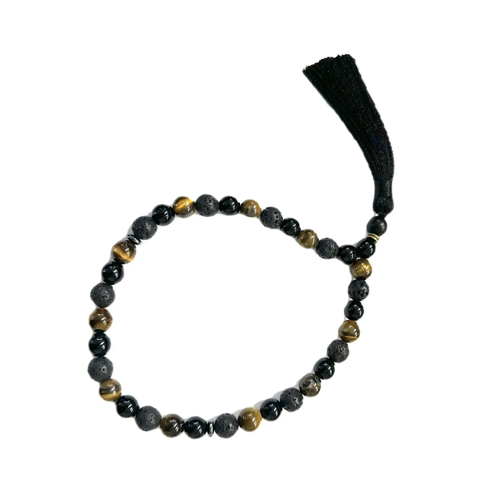 • Schwarze Steintasbih, Tigerauge 33 Perlen