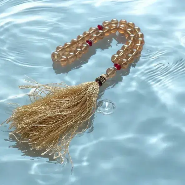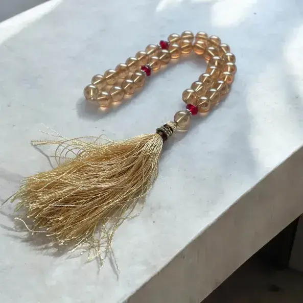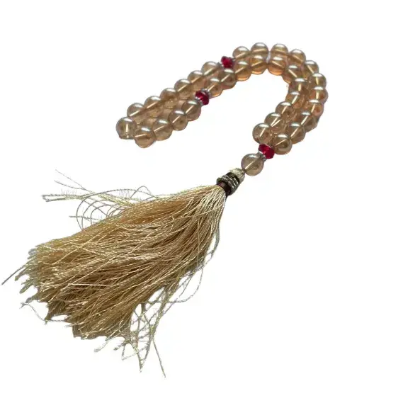 Einzigartiges Tasbih in goldener Farbe mit schwarzen und roten Details