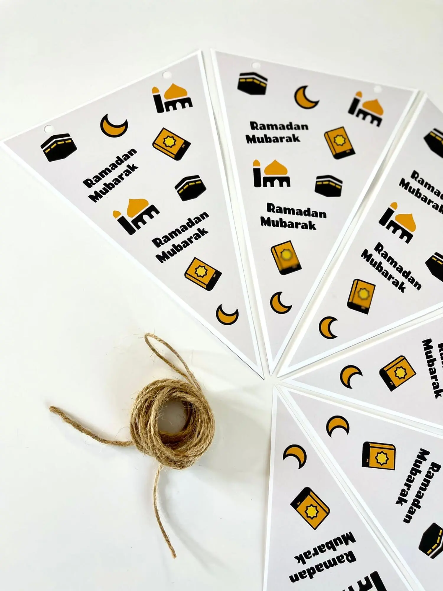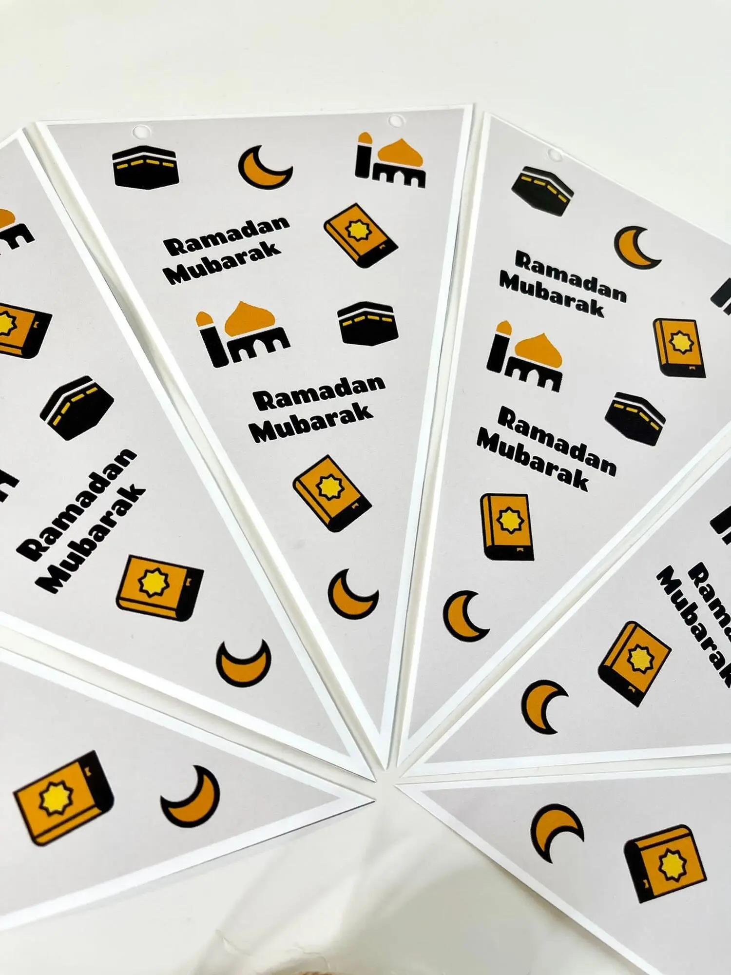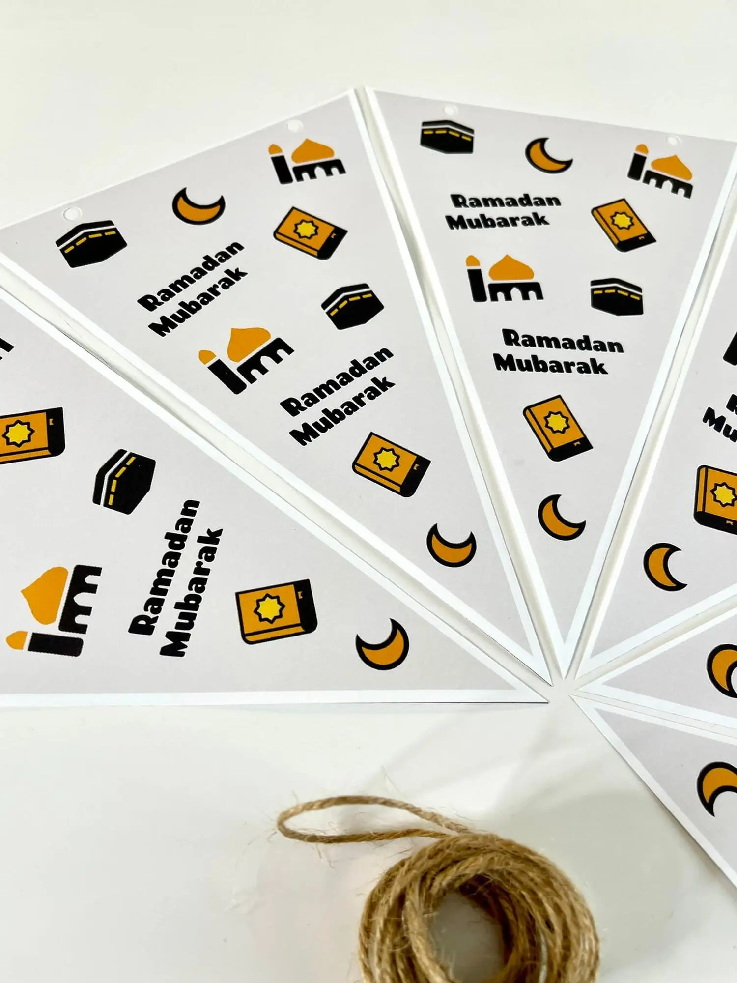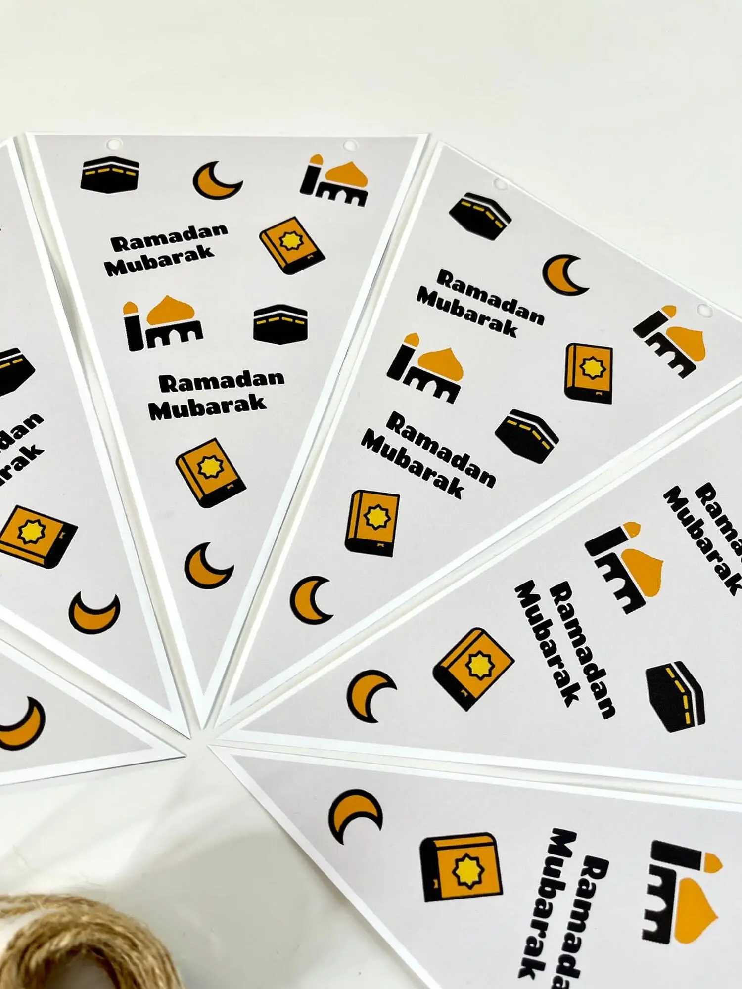 Seks styks Ramadan pynt i smukt design og kvalitets papir ink. snor.