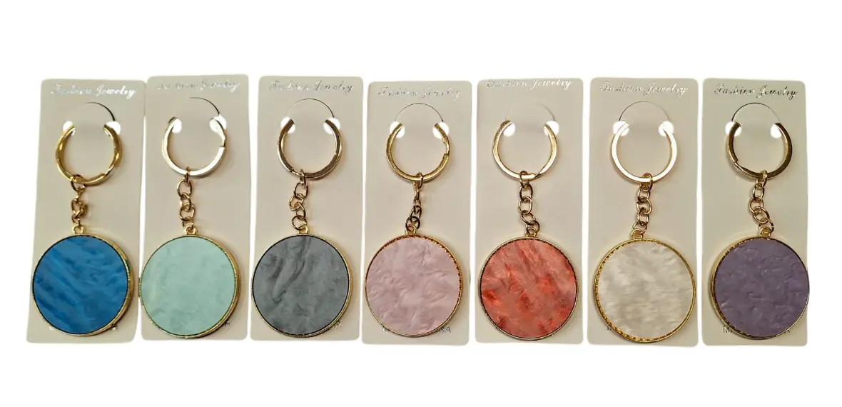 Hver nøglering er indrammet i gyldne detaljer, og fås i flere farver, som hver kan symbolisere en særlig stemning: