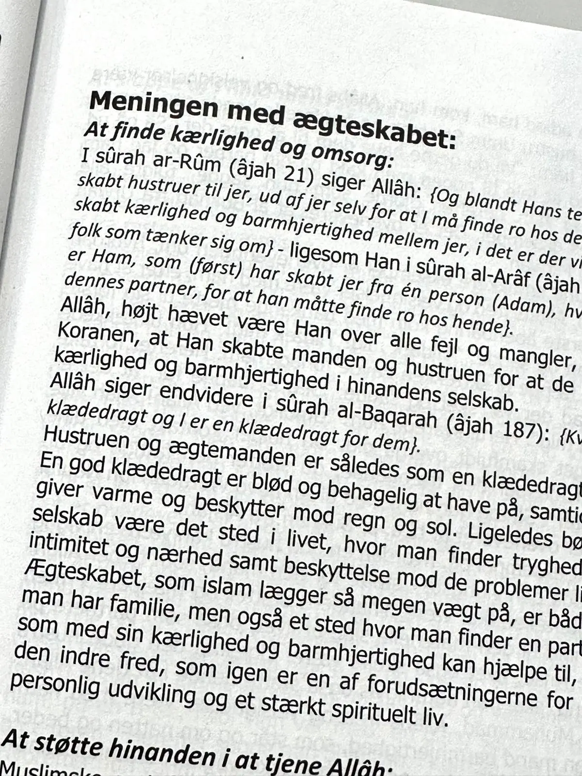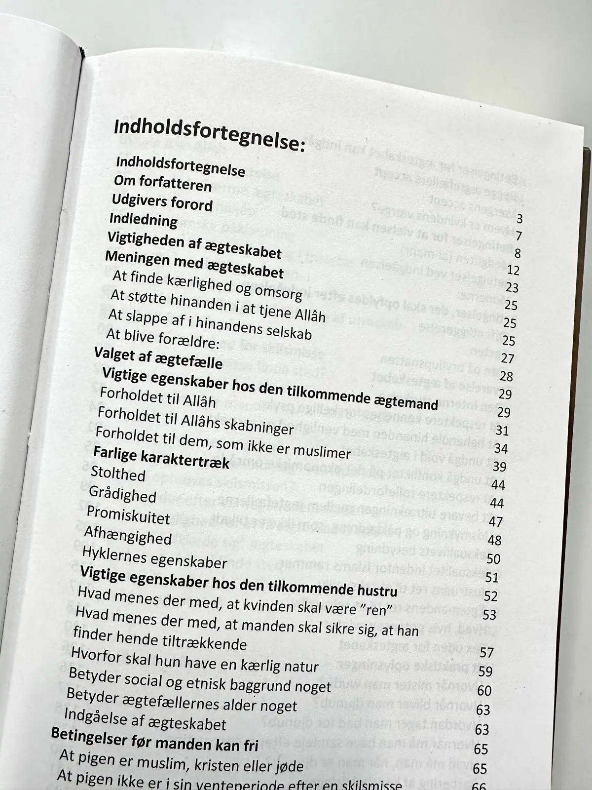Forfatteren som er dansk konvertit og imam, tolker de islamiske kilder ind i den konkrete situation, vi lever i i dag indenfor emnet ægteskab og samliv. Indeholder både konkrete regler og generelle anvisninger.