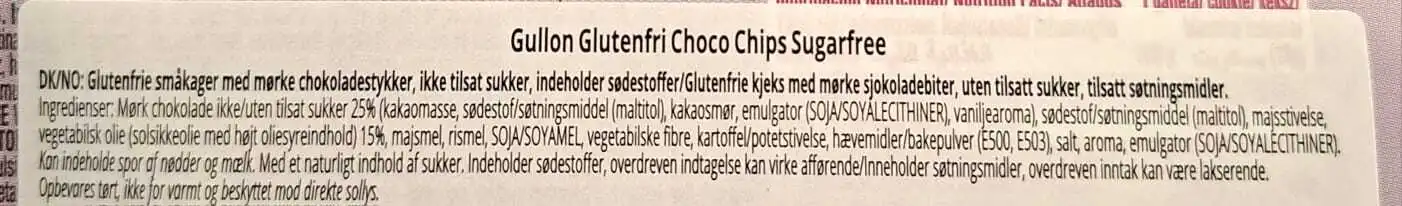 Glutenfri chokoladechips uden tilsat sukker (med sødemidler) og Vegansk