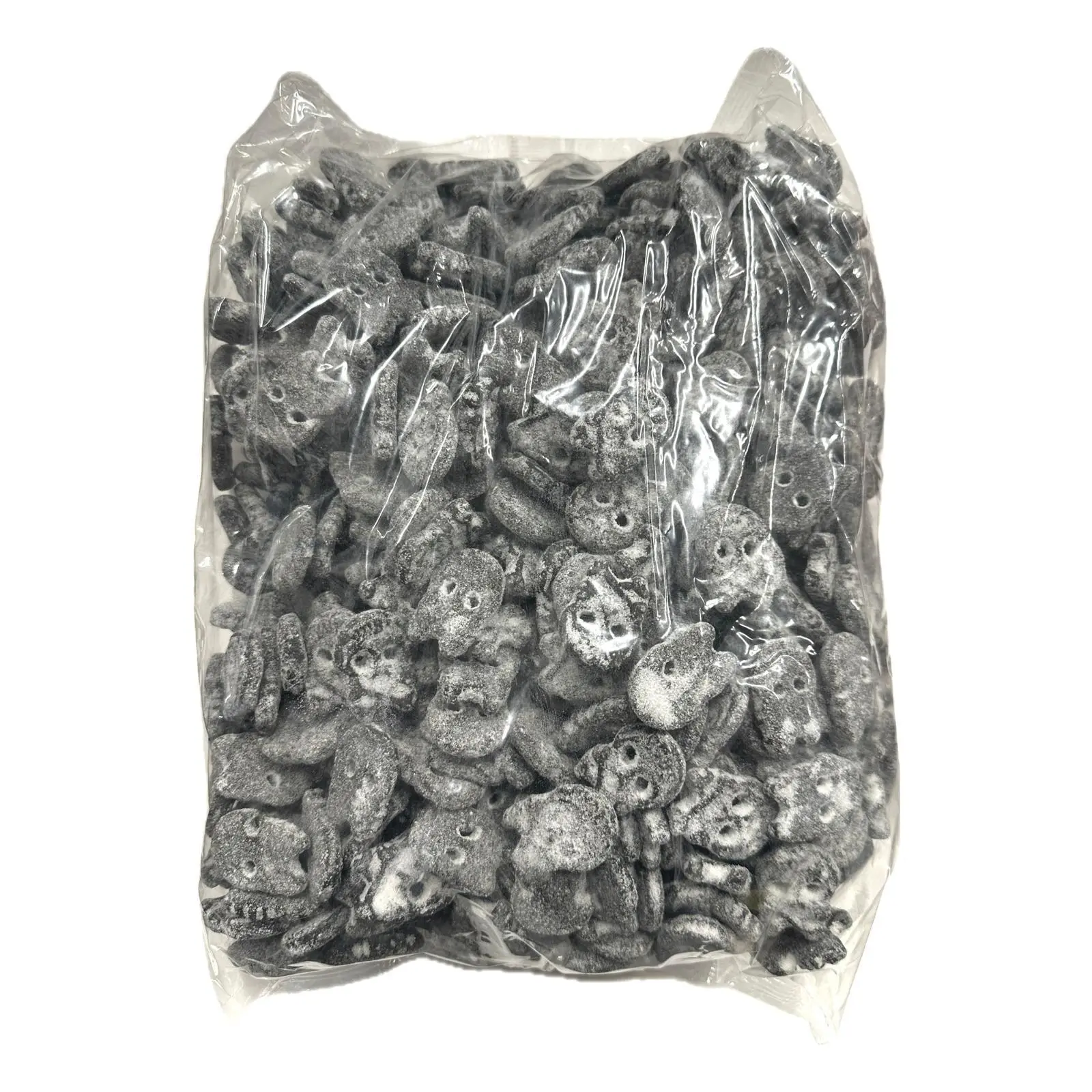 Ingredienser: Sukker, glucose-fruktosesirup, majsstivelse, vand, ammoniumchlorid, lakrids, salt, smag, farve: E153.