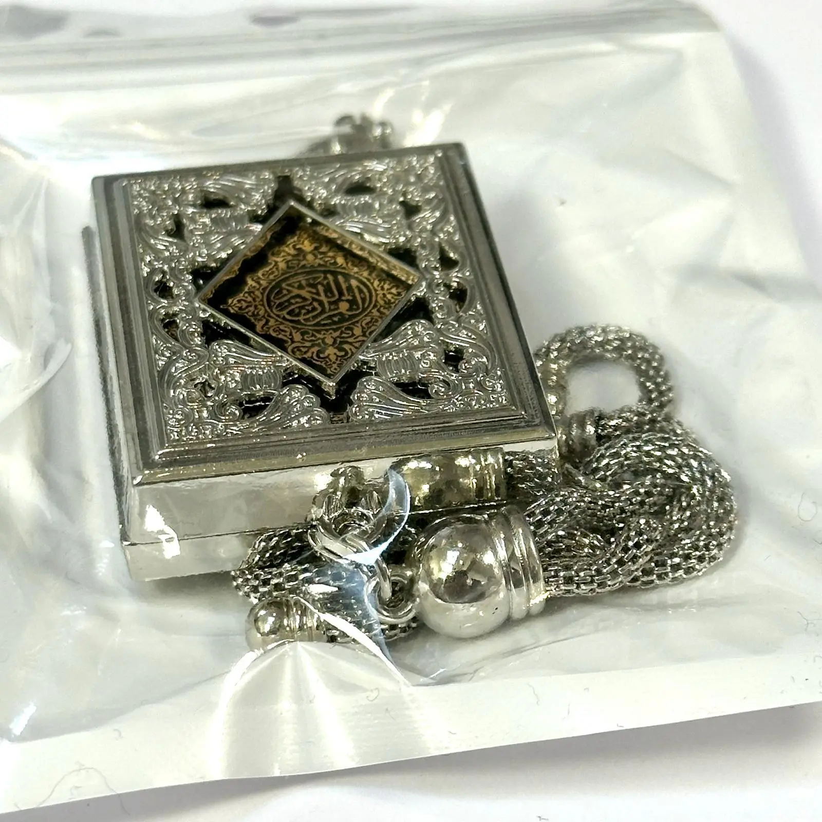 Mini koran i metalæske, sølv