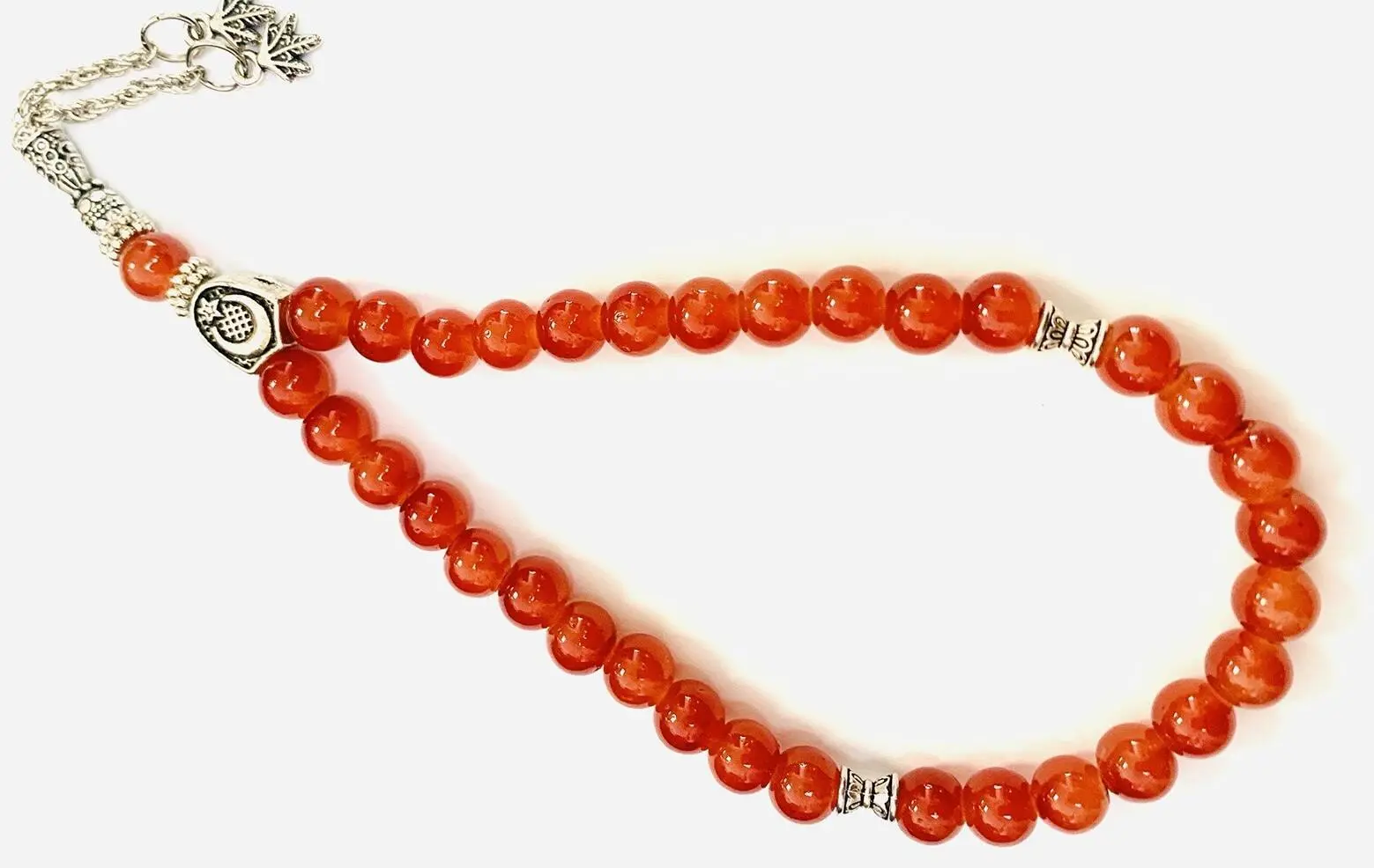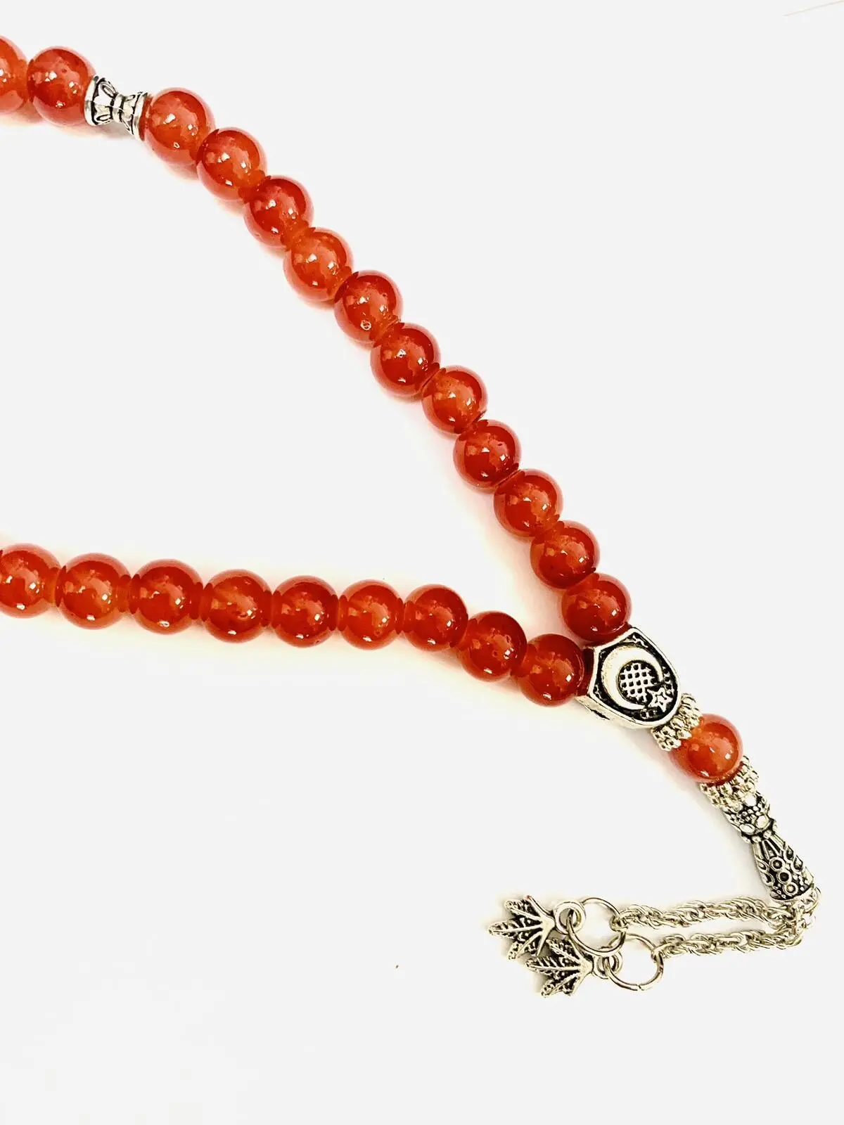 Blod Appelsin farvet Glas Tasbh med 33 perler