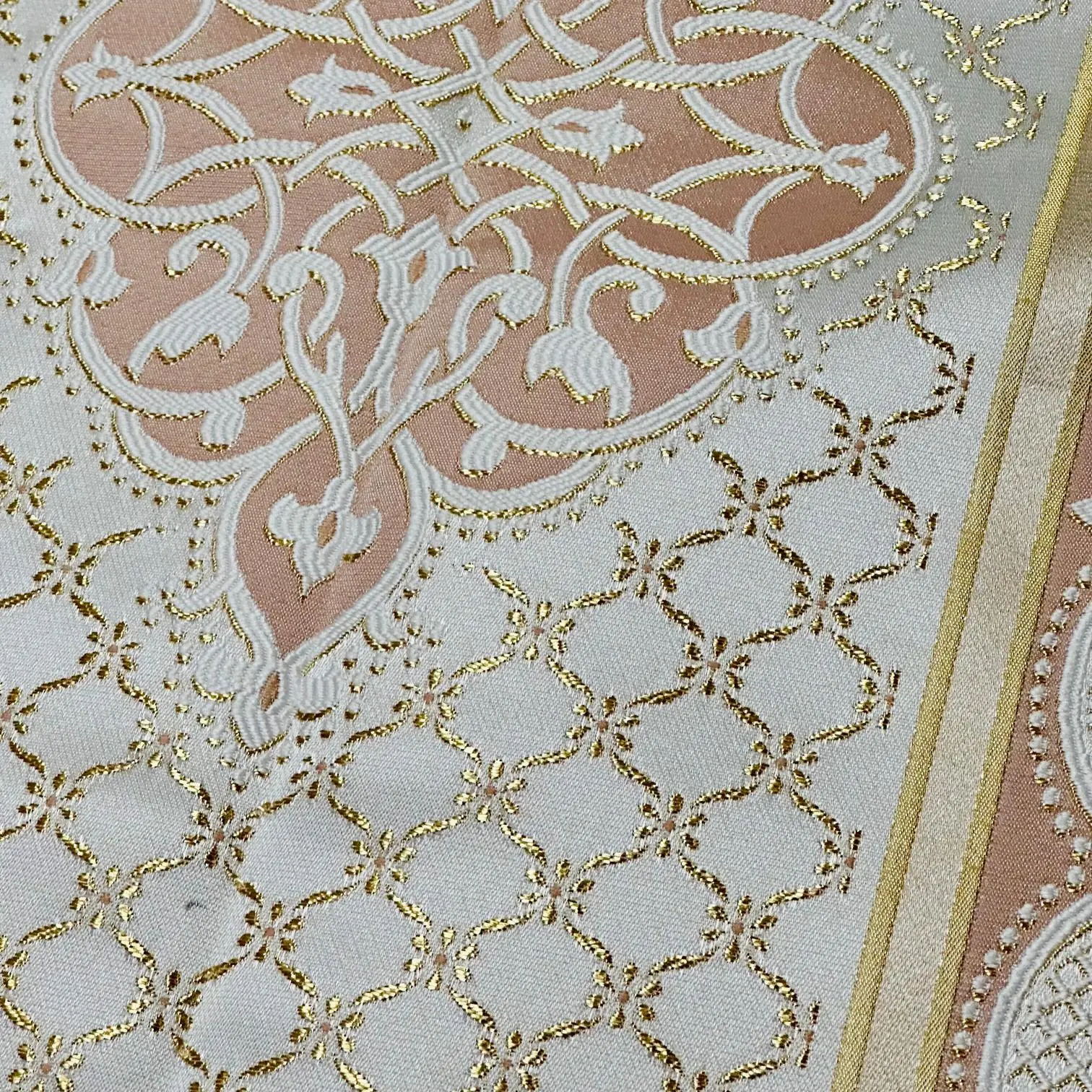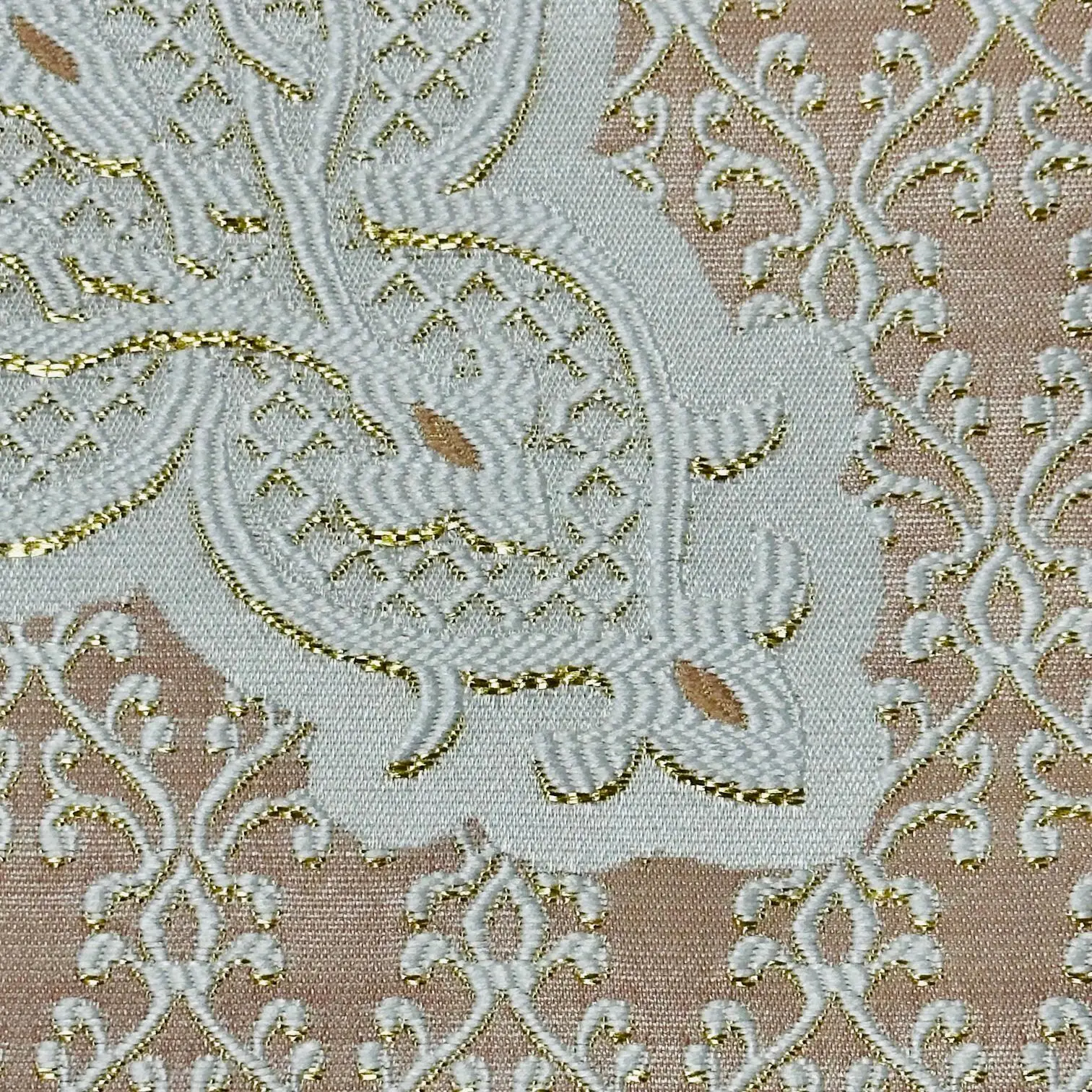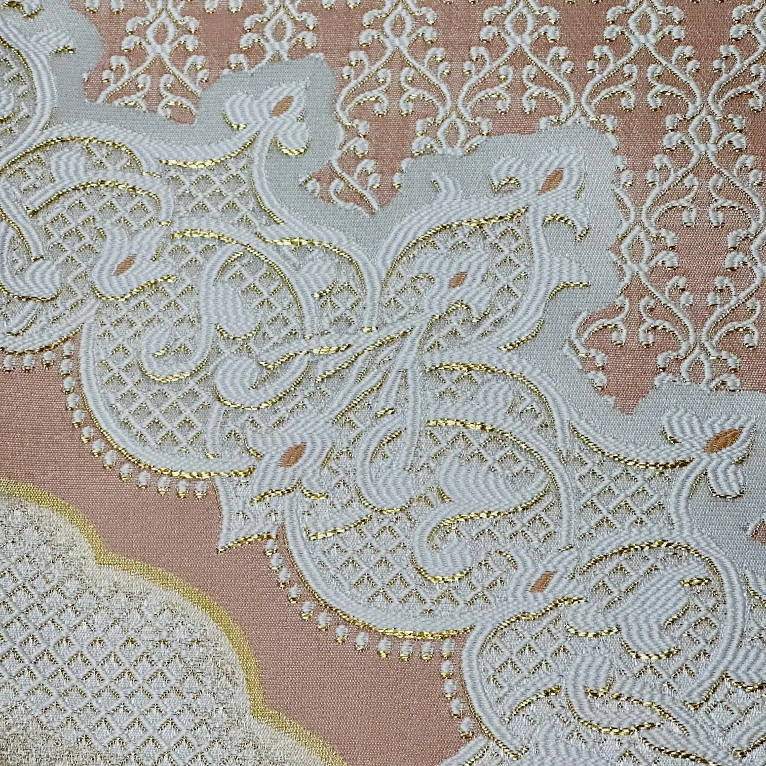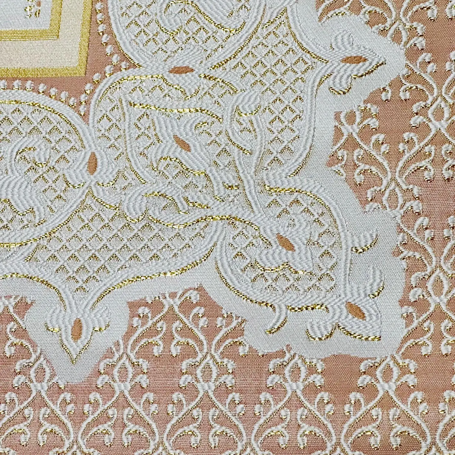 Mange fine gylden detaljer i vævningen.