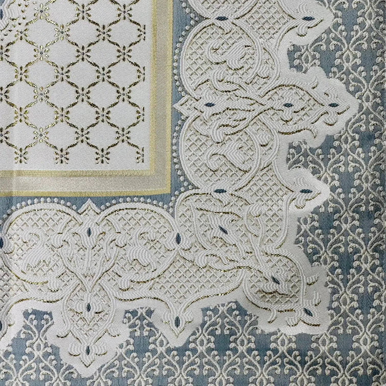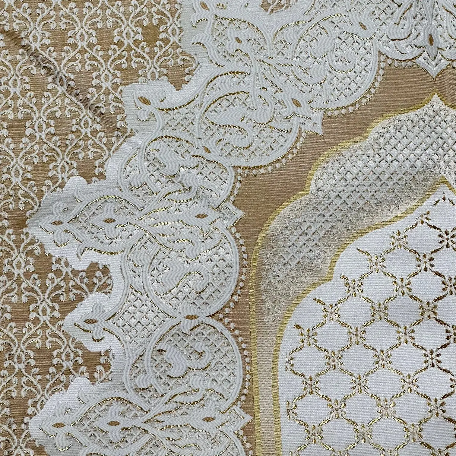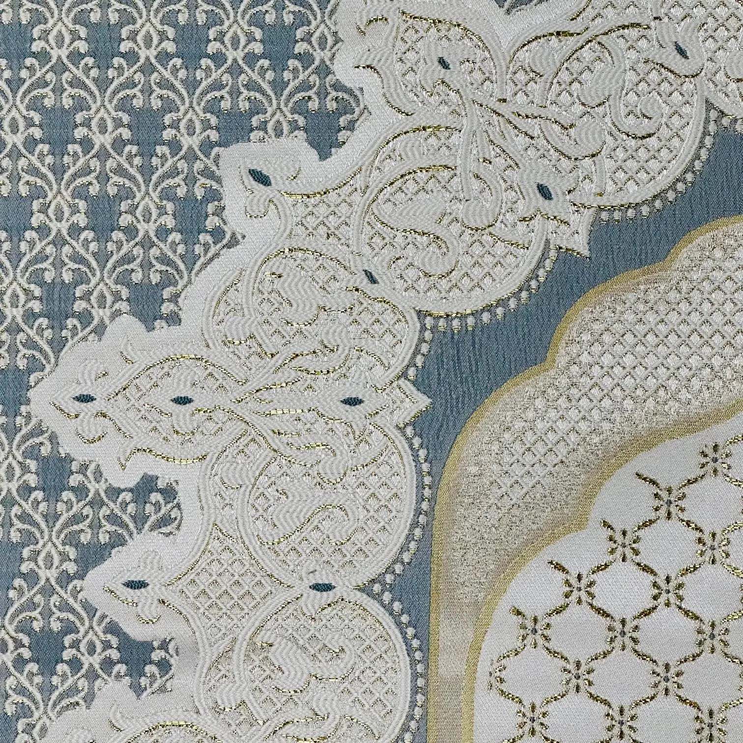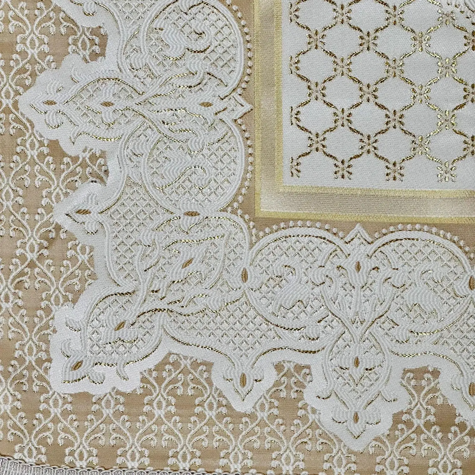 Mange fine gylden detaljer i vævningen.