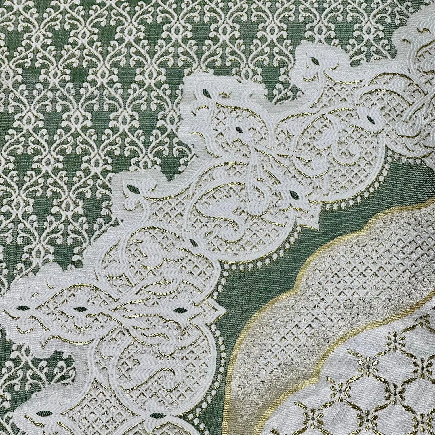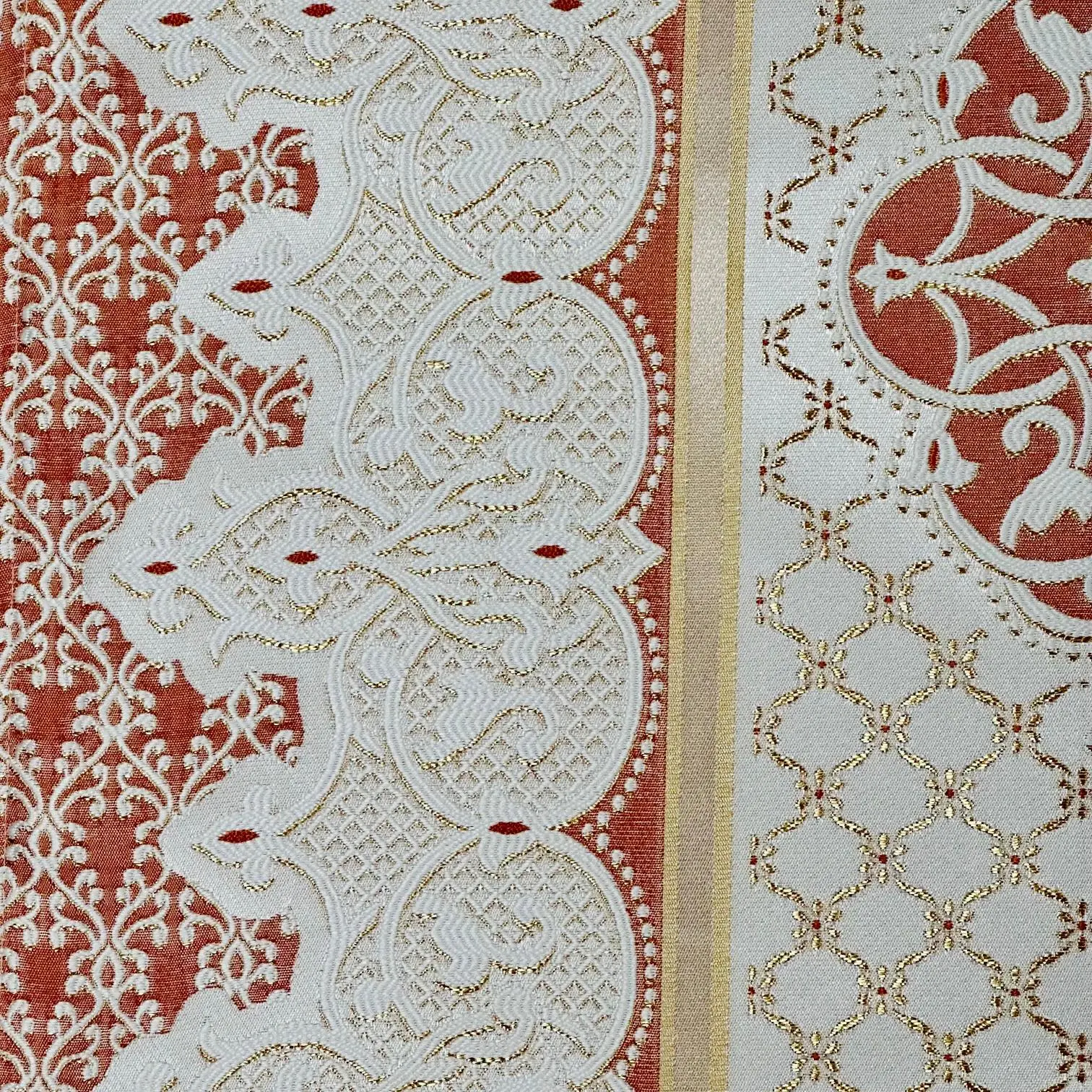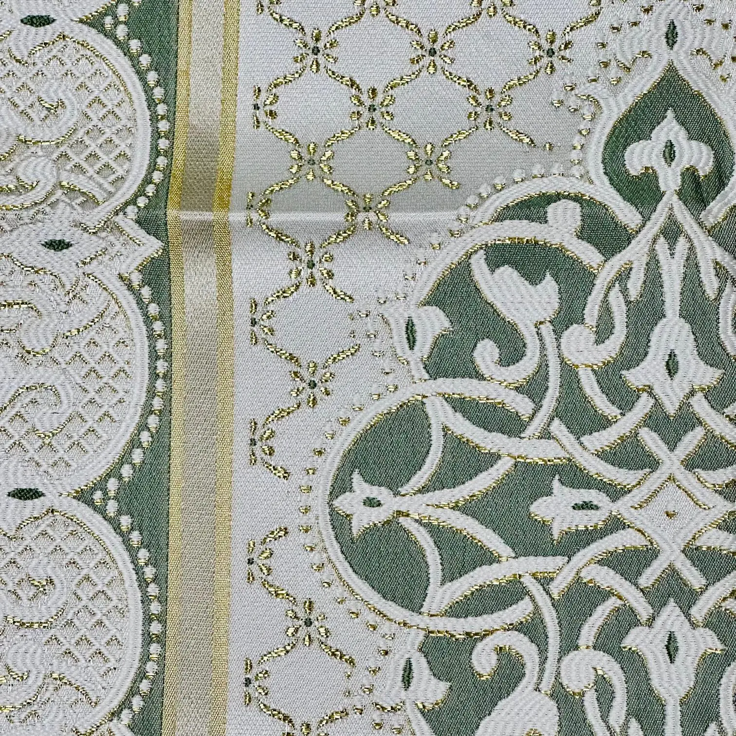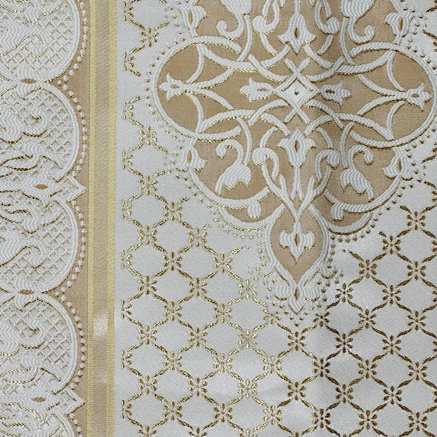 Mange fine gylden detaljer i vævningen.