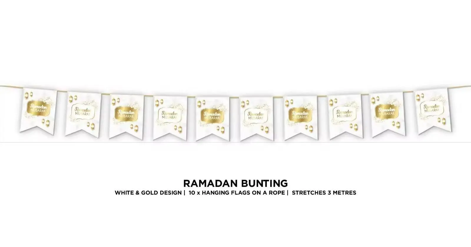 Ramadan Mubarak Banner (Guld og Hvid)