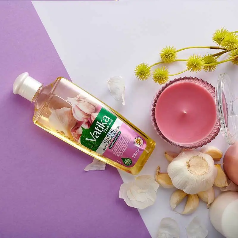 Hvidløgsekstraktet i Dabur Vatika Hårolie hjælper med at forbedre blodcirkulationen i hovedbunden, hvilket hjælper med at øge hårvæksten og styrke hårrødderne. Det er også kendt for at have antibakterielle egenskaber, der hjælper med at bekæmpe skæl og andre hovedbundsproblemer.