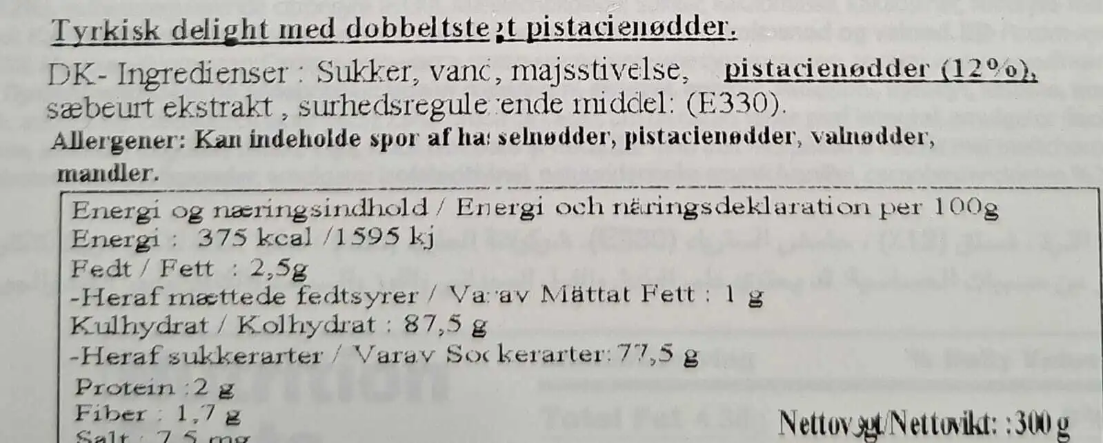 Usaş Turkish Delight med Pistacie, 300g