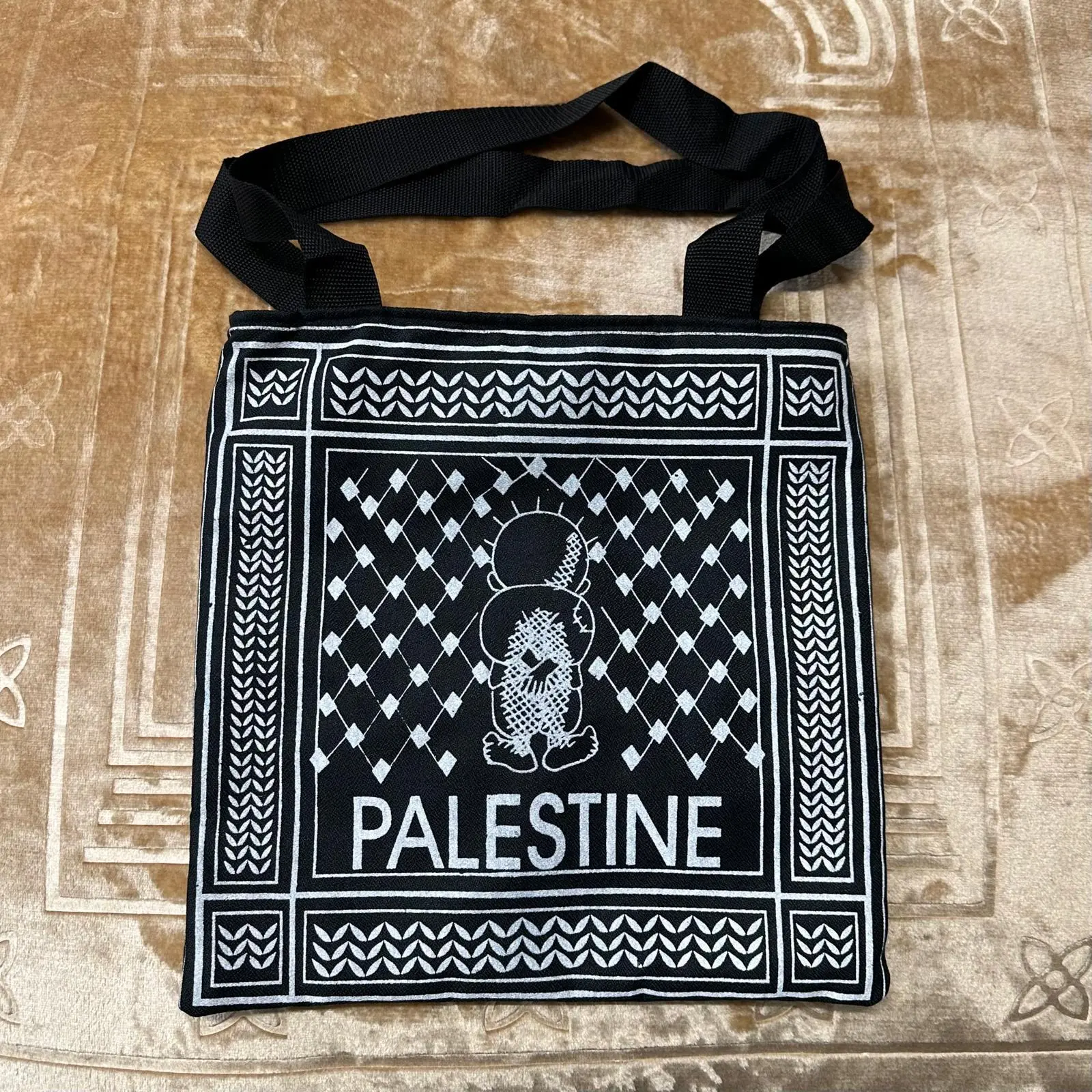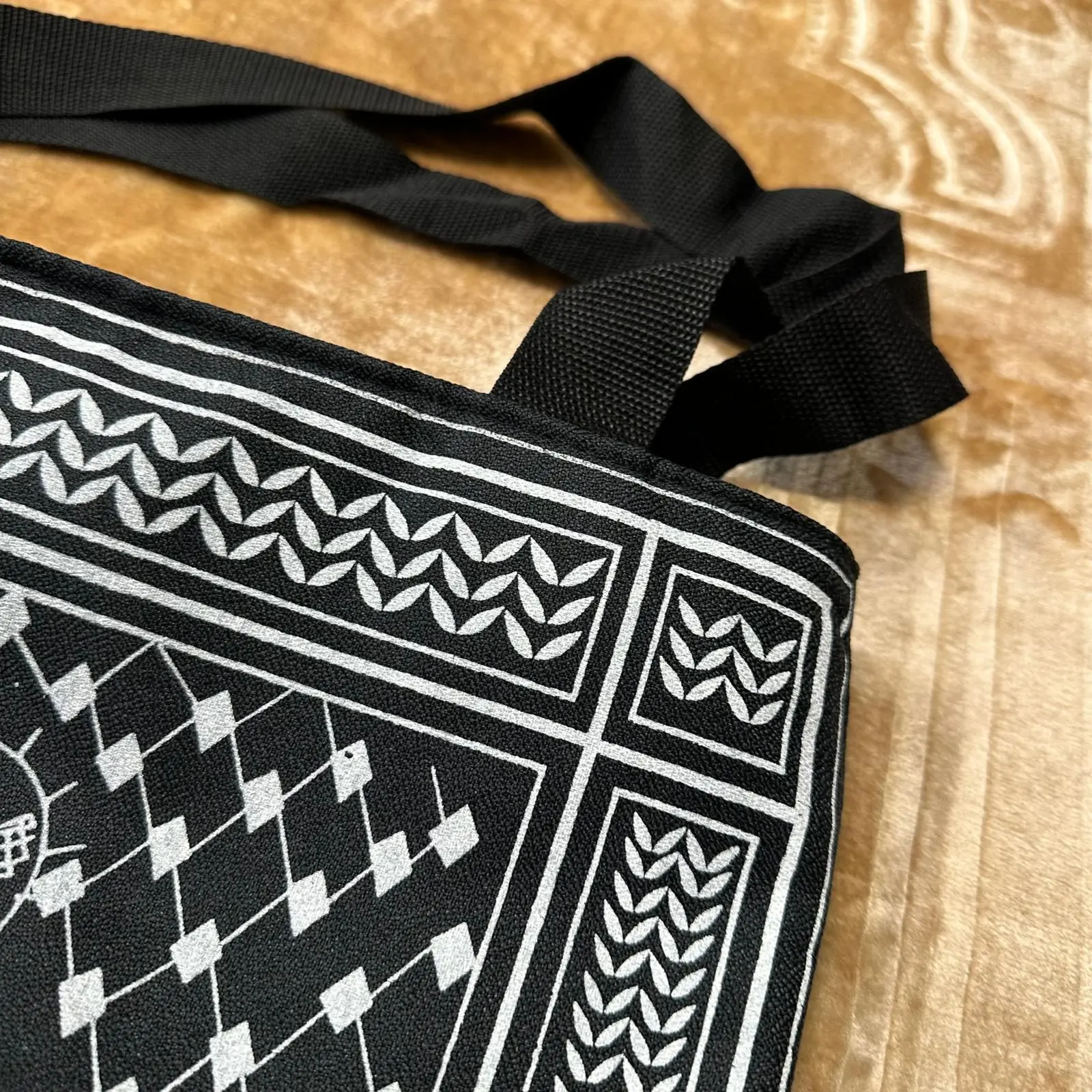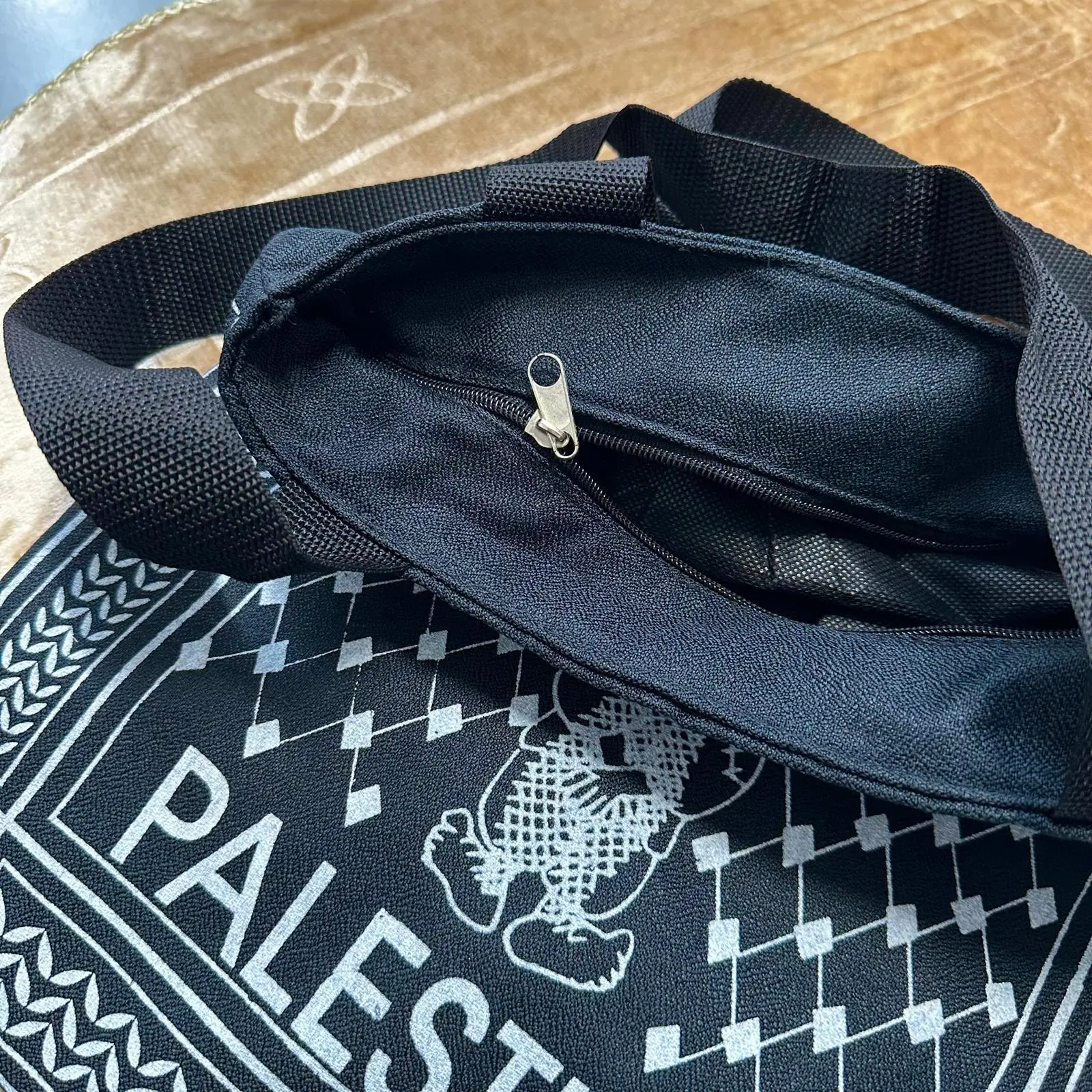 Håndlavet Palæstina Muletaske med lynlås - Sort/hvid