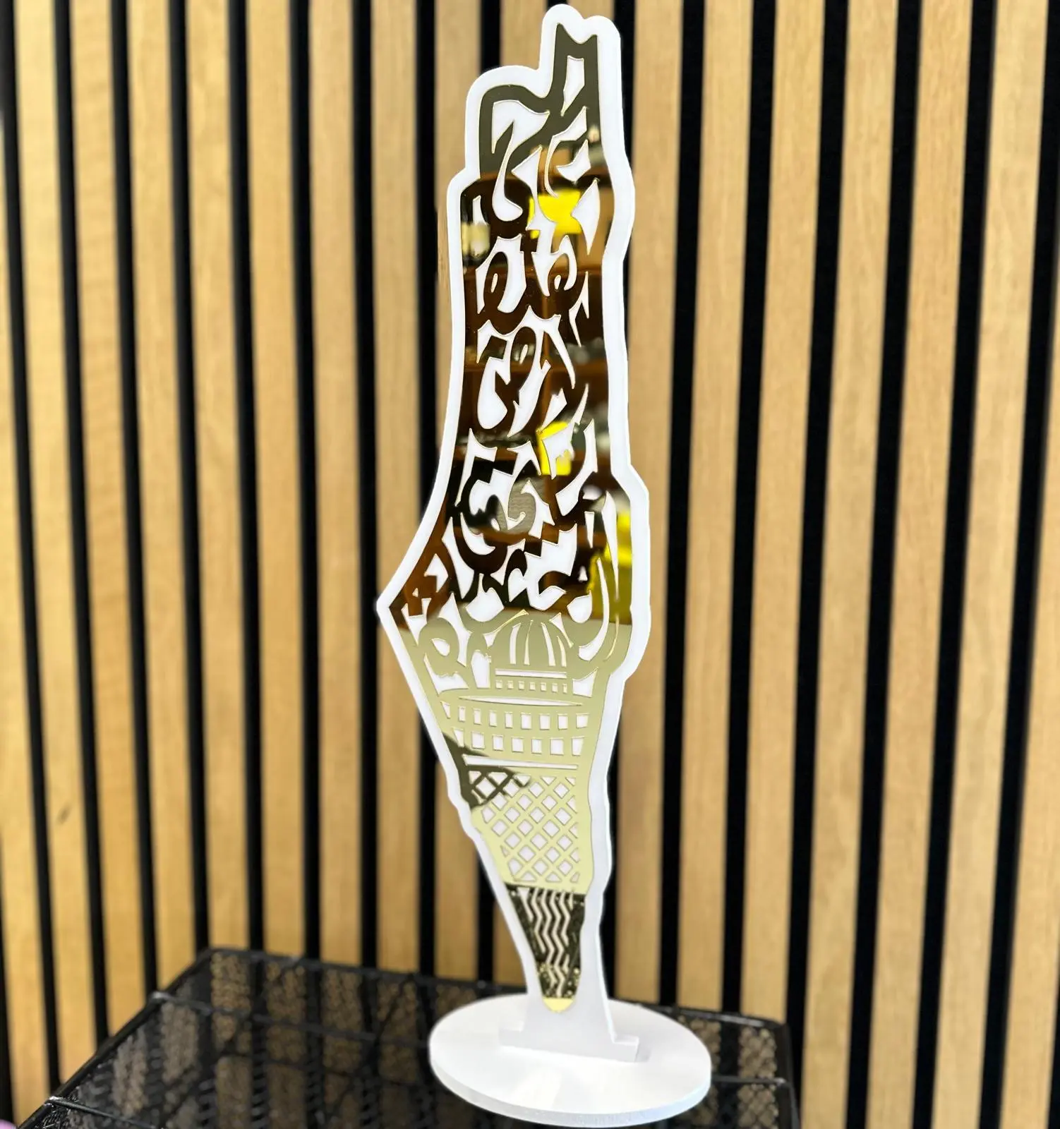 Palestine map dekoration med stativ, gylden hvid