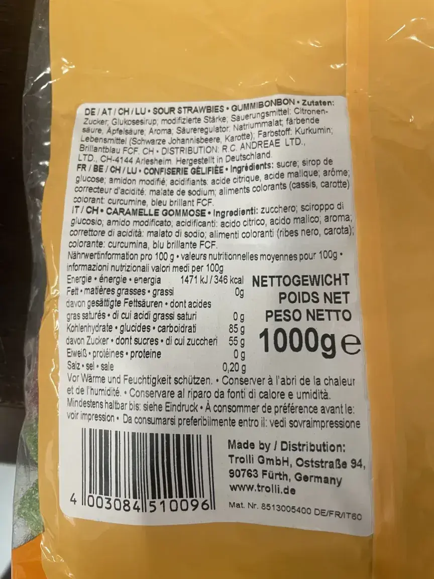 Trolli Gummi Candy, Sour Strawberry, 1000g
