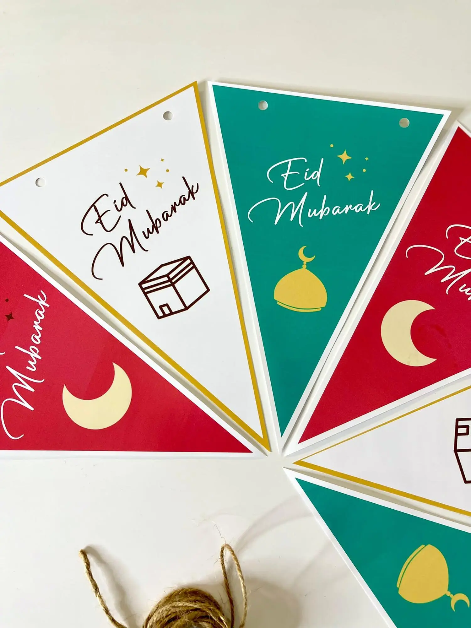 Sex stycken Eid-dekorationer i vacker design och kvalitets papper inkl. snöre.