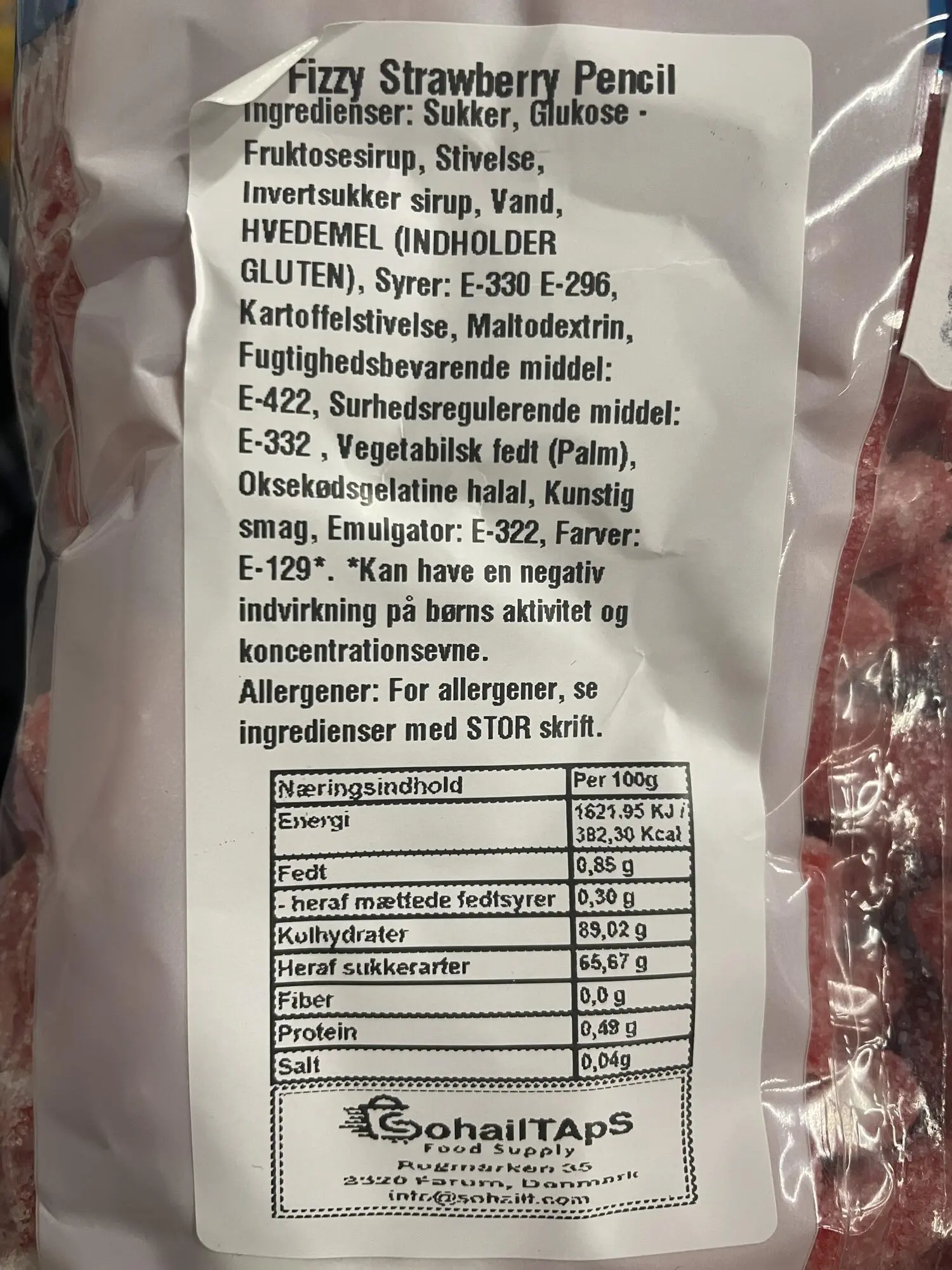 • Sweetzone Fizzy Strawberry Pencils 1kg
