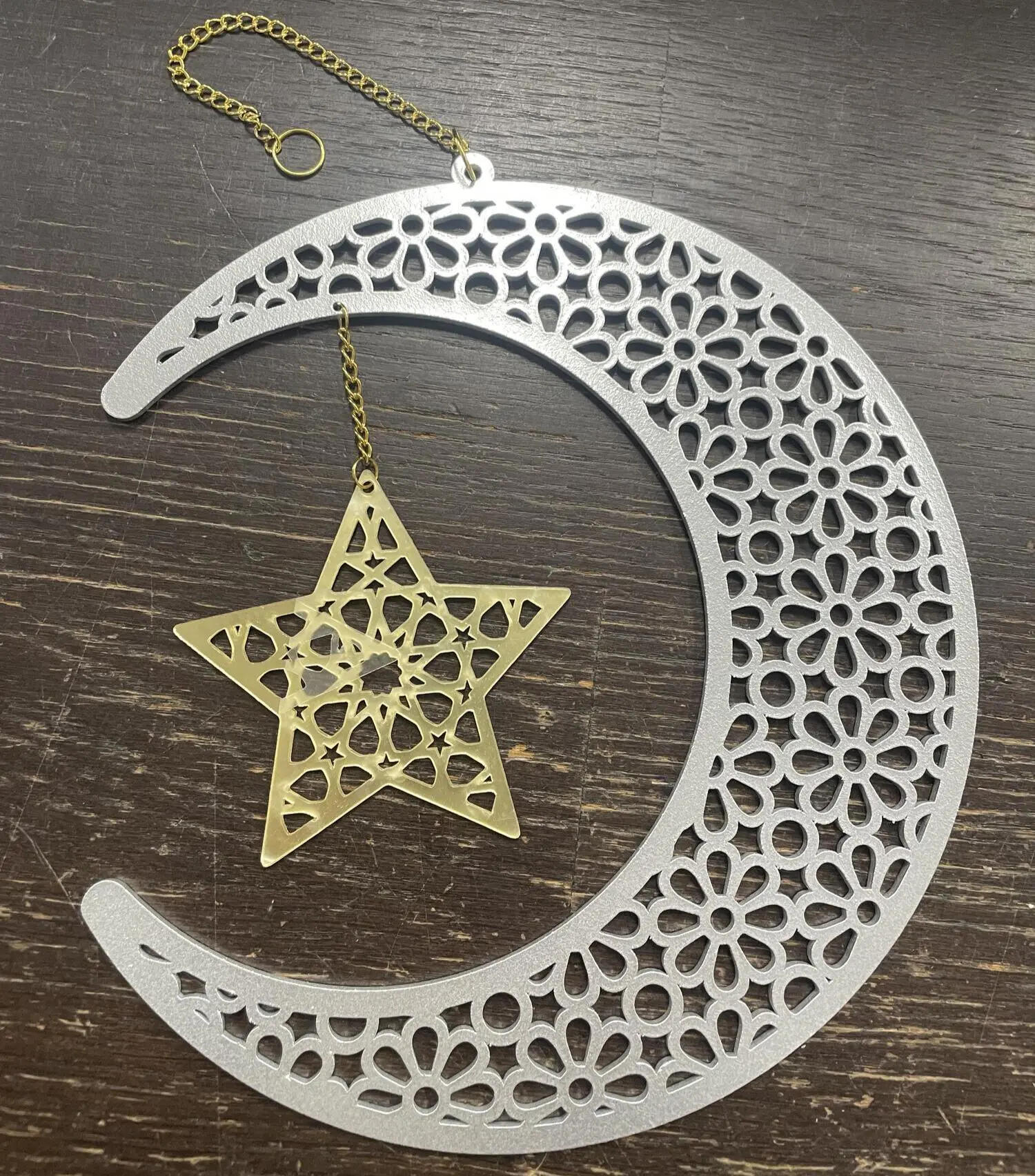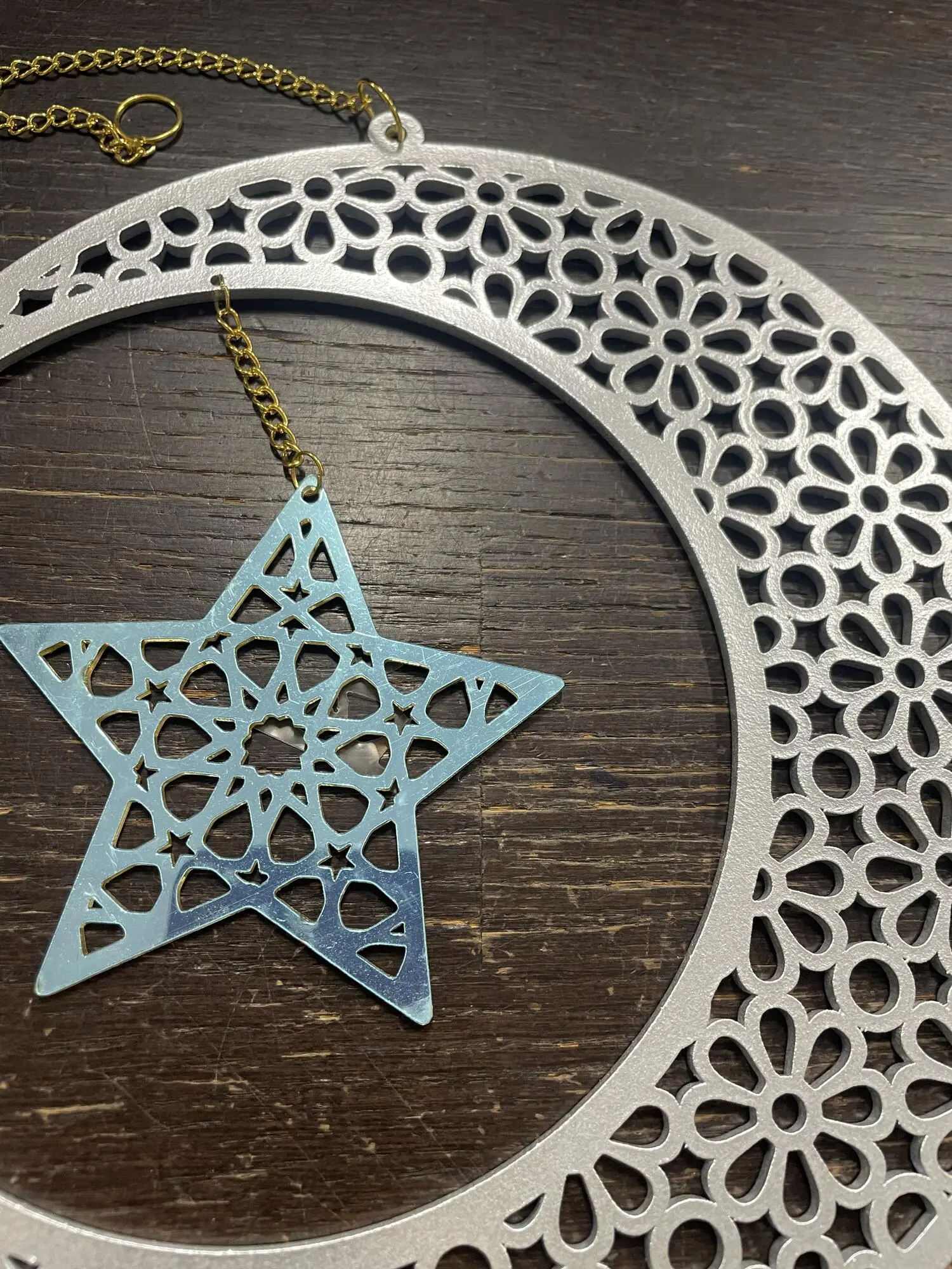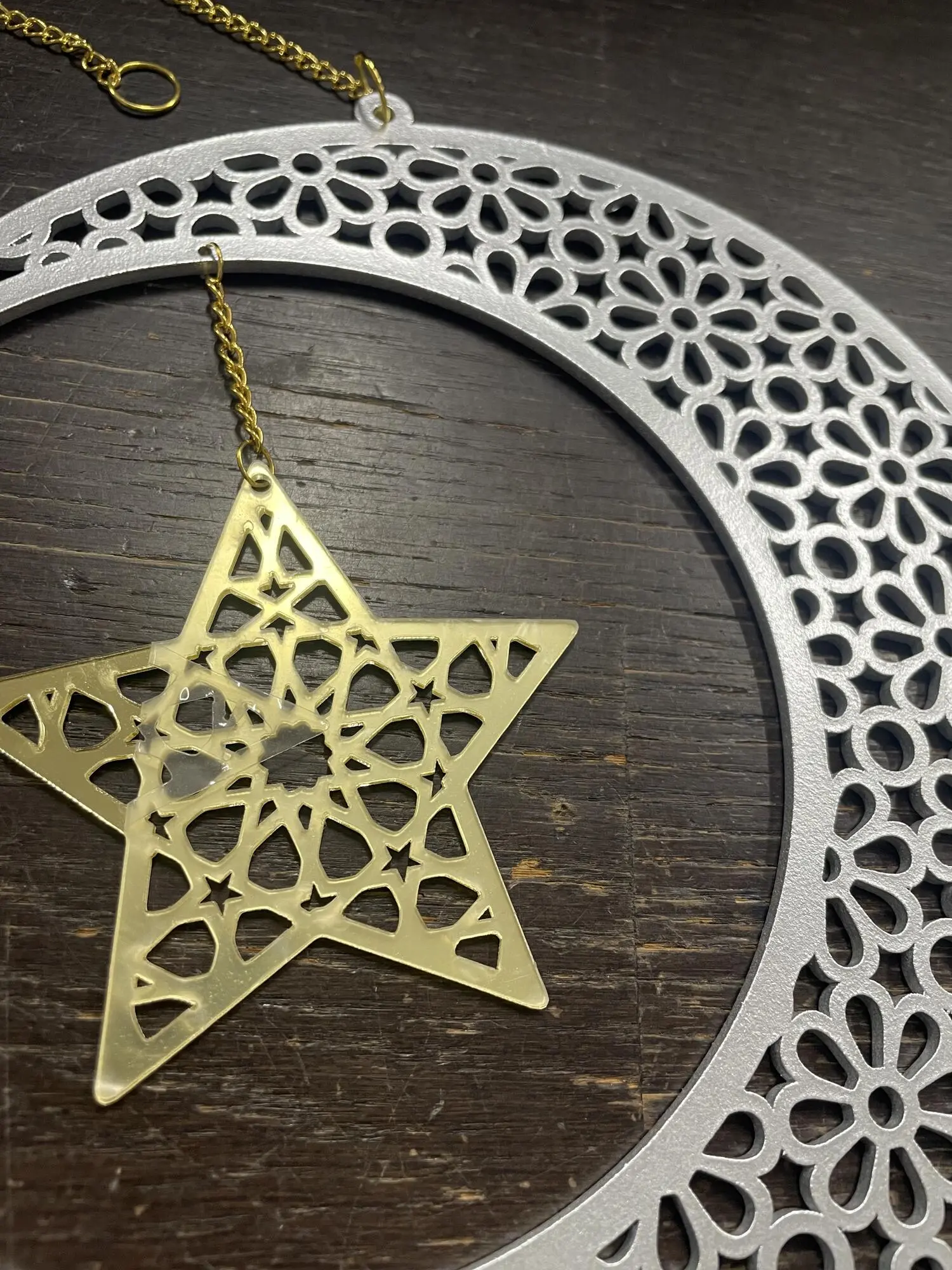 Måne i silver och guld med hänge