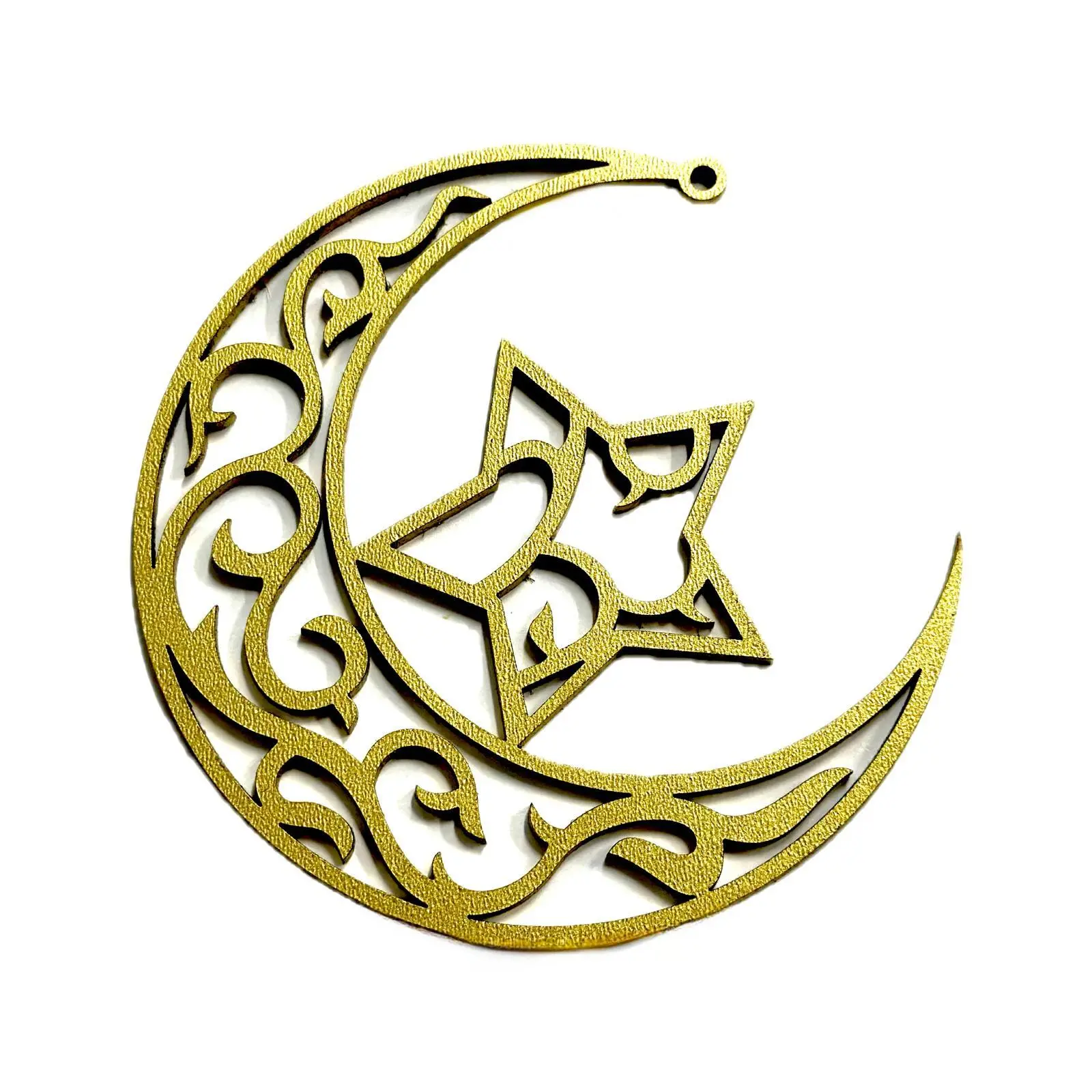 • Handgjord månformad trädekoration i guld