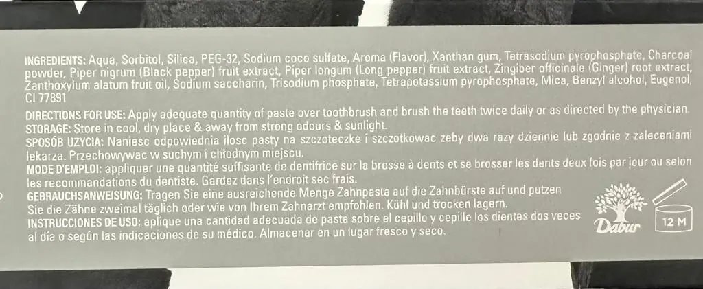 Dabur tandpasta indeholder ikke kunstige farvestoffer, fluor eller konserveringsmidler.