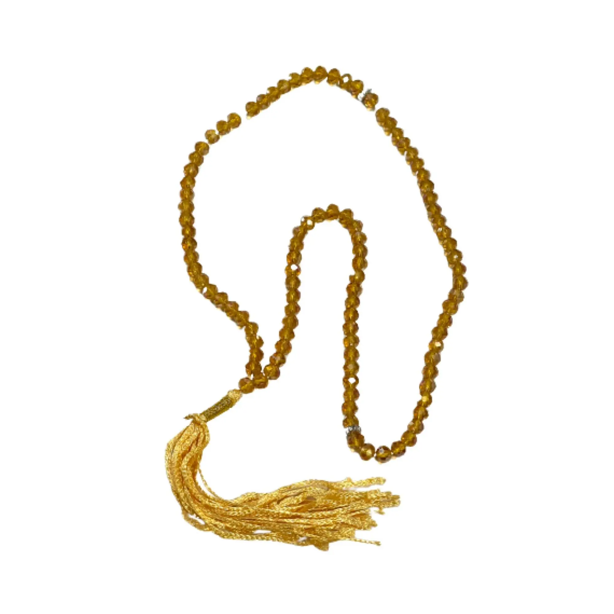 Guldfarvet Krystal tasbih, hård plast, 99 perler