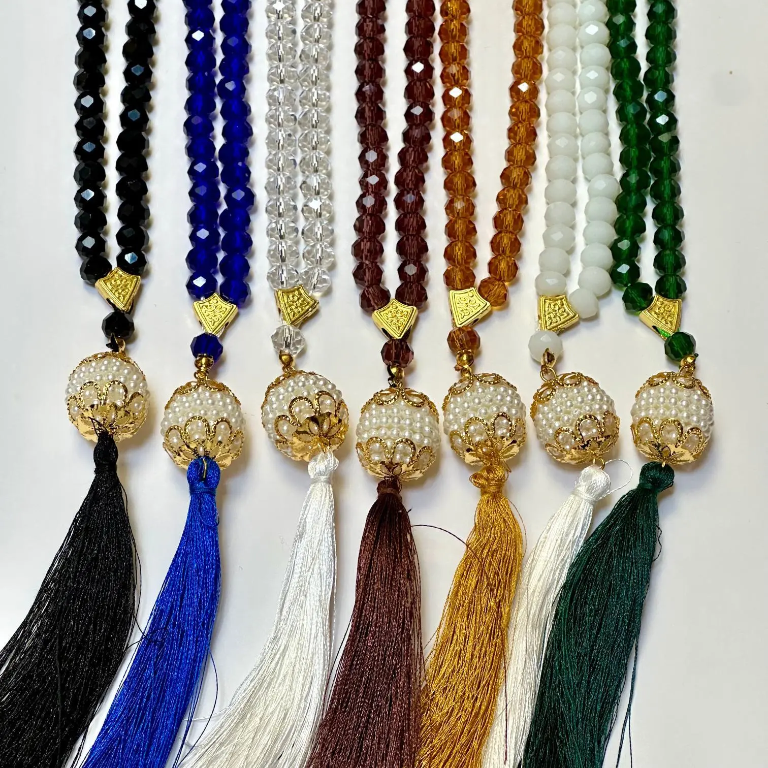 Krystal Tasbih med kuglevedhæng, 99 perler (7 farver)