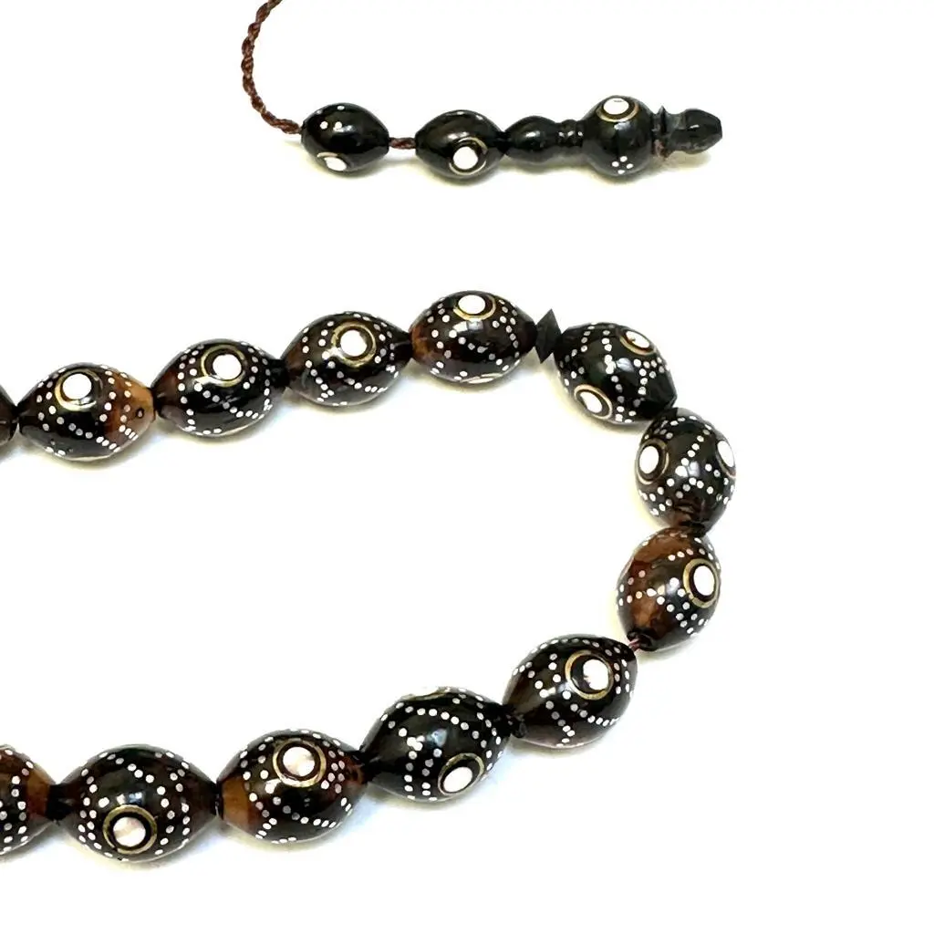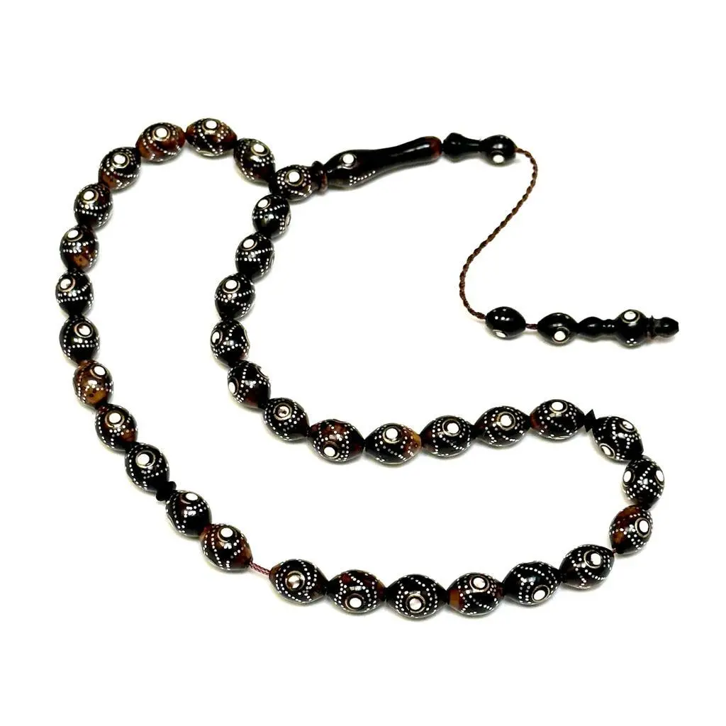 Sort/brun håndlavet luksus tasbih med sølv design, 33 perler