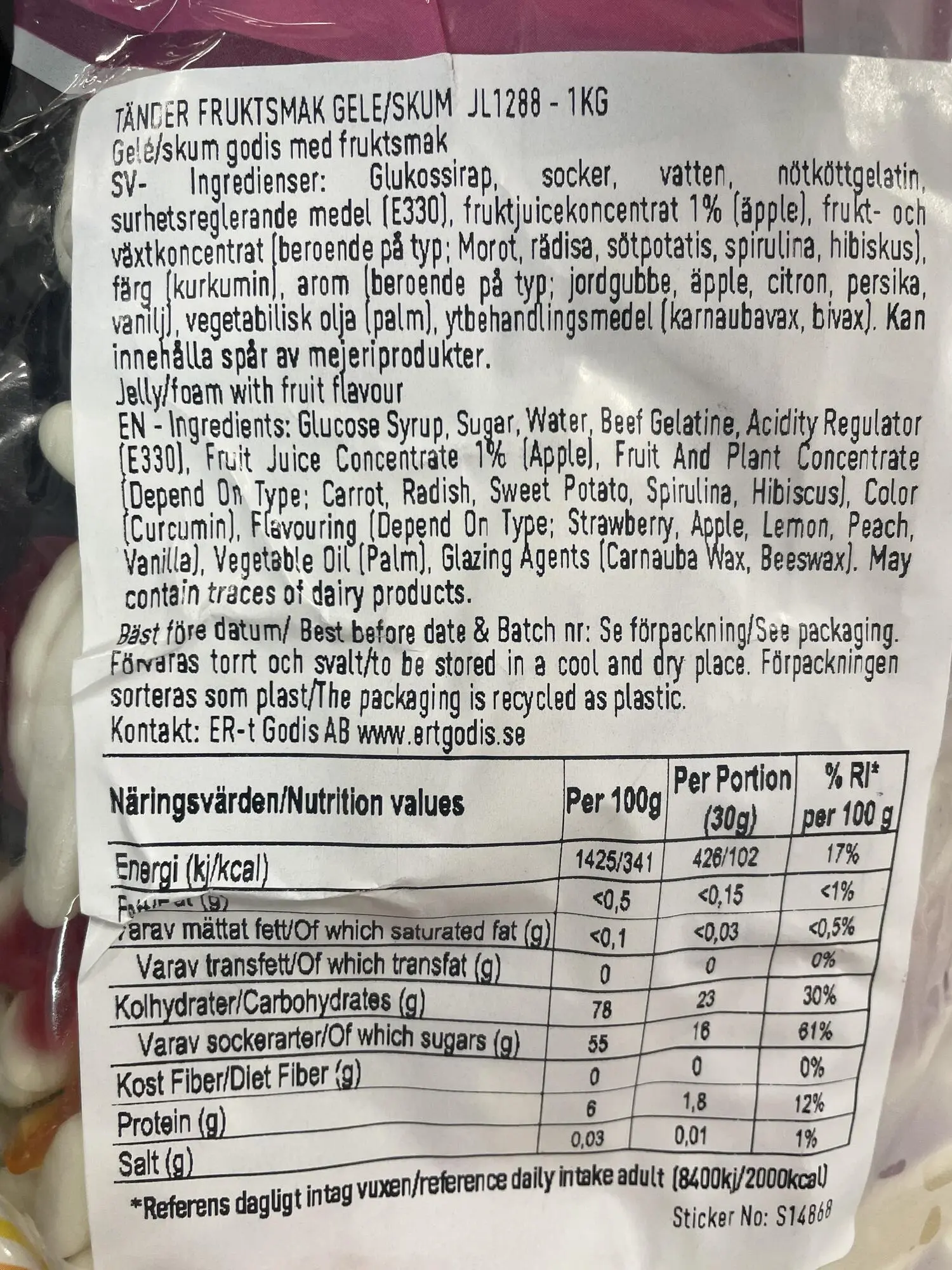 Tænder Med Frugtsmag Gele/skum - Jellioo